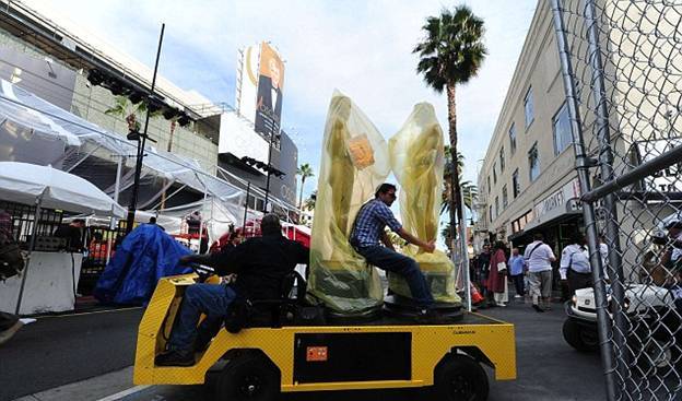 Лос-Анджелес готовится к церемонии Оскара, которая пройдет 2 марта. Возле театра "Долби" сейчас ведутся круглосуточные работы по подготовке знаменитой красной ковровой дорожки, да и в самом помещение можно увидеть множество звезд, которые сейчас усиленно репетируют церемонию награждения.