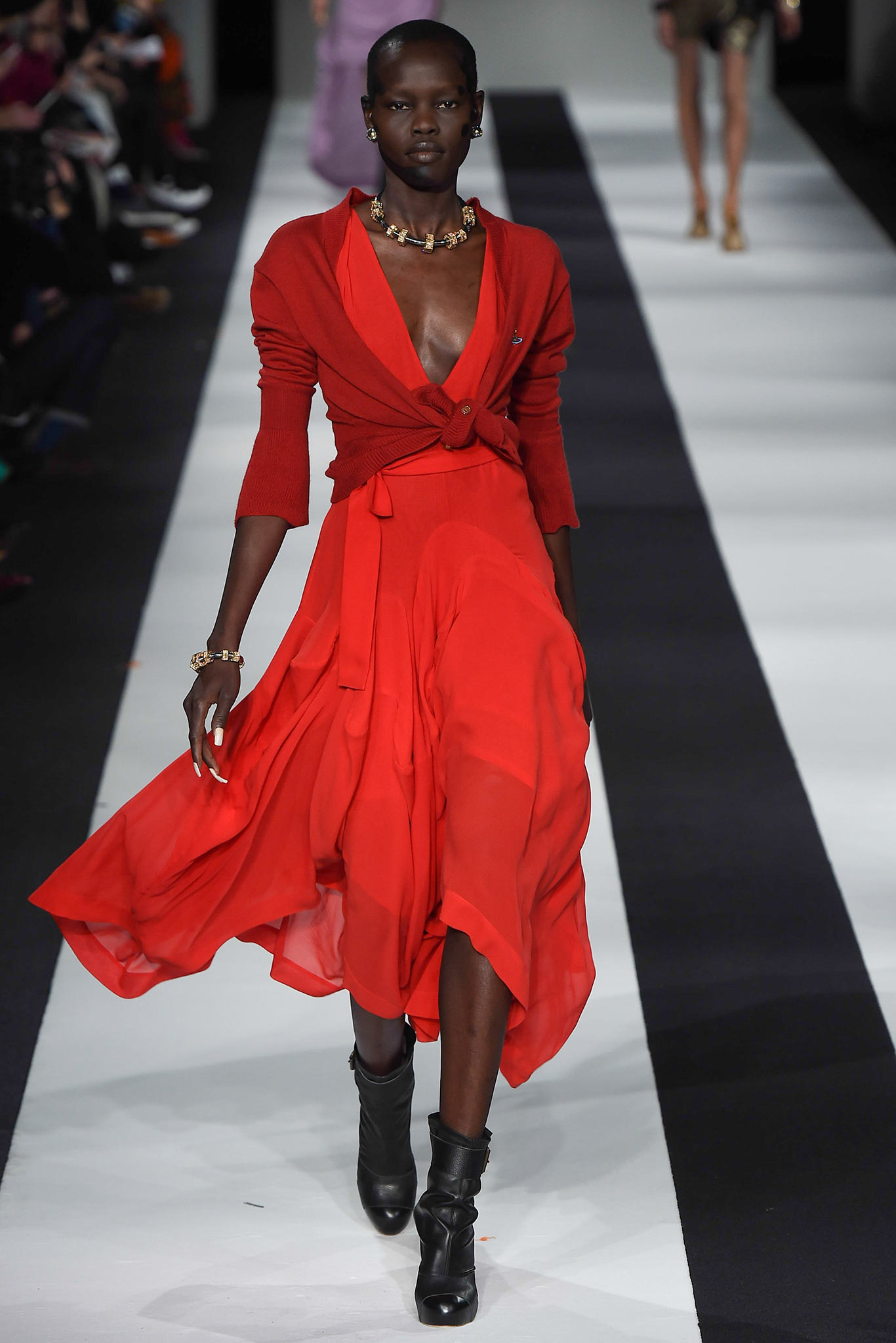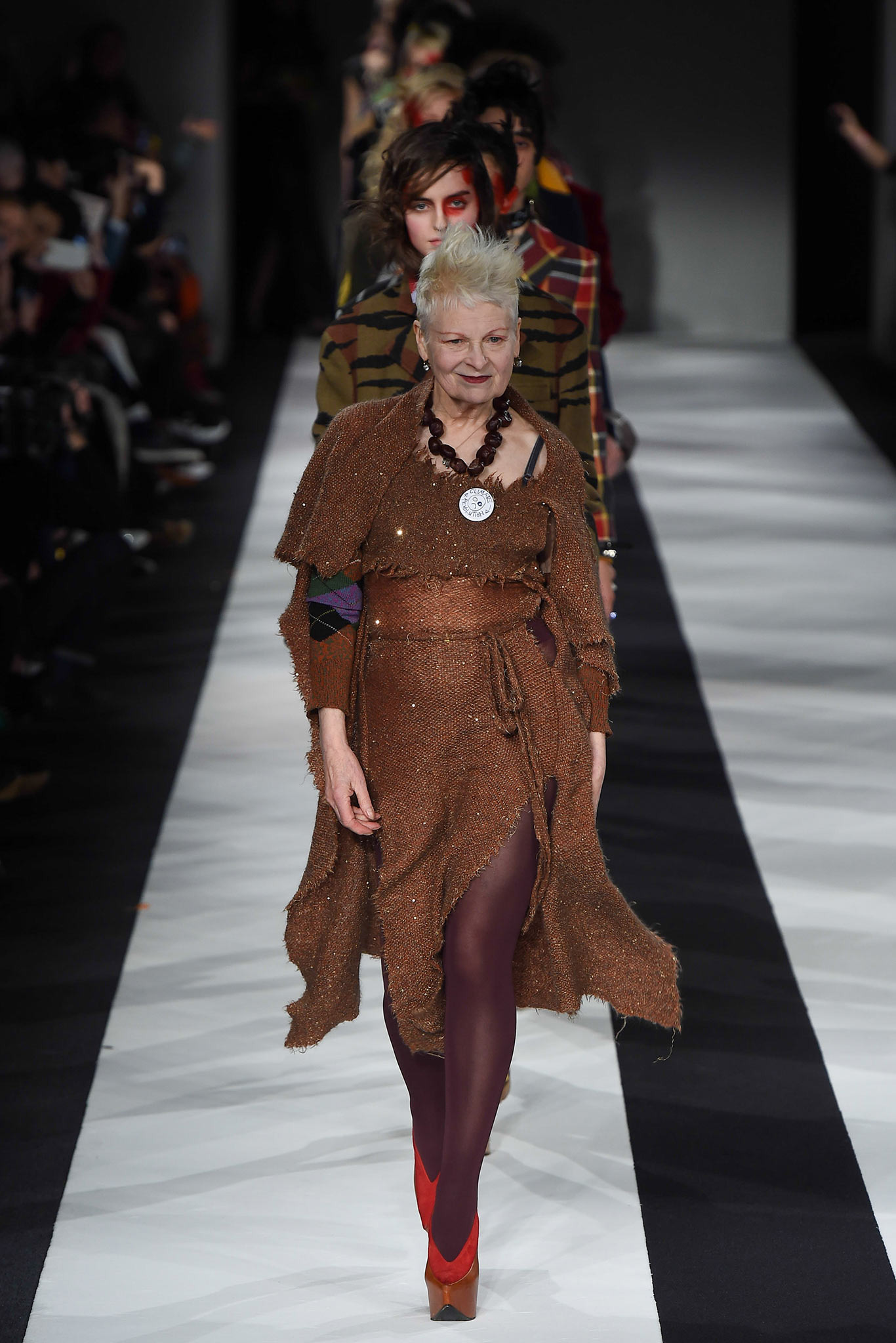 Вивьен Вествуд - одна из самых ярких постоянных дизайнеров в индустрии моды, ее уважают во всем мире коллеги и преданные поклонники. На этот раз ее наследие Южной Англии прослеживается в конструкциях и акцентах на британский текстиль: твид, клетка и регби-полосы.