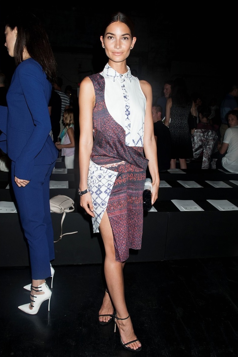 Дженнифер Моррисон выбрала черное платье миди для посещение показа Мары Хоффман на Mercedes-Benz Fashion Week Spring 2015, что проходил в Салоне в Линкольн-центре в субботу в Нью-Йорке.