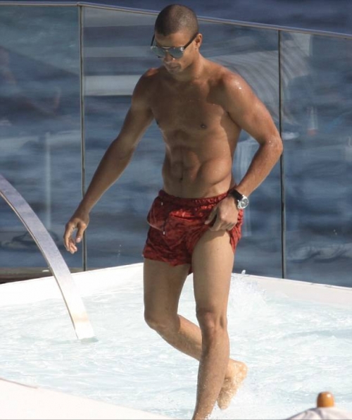 В отличие от нее, ее молодой бойфренд Брахим Зейбат щеголял накаченным торсом, когда весело проводил время в бассейне и с ее 12-летним сыном Рокко.