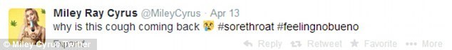 Майли надеялась выступить во вторник на концерте в Канзас-Сити. В результате, вместо концерта больничная койка. Напомним, что еще в воскресенье певица написала на своем твиттере, что чувствует себя плохо, у нее болит горло и сильный кашель,