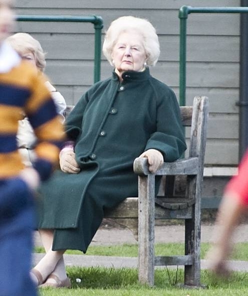 В этом году актриса Мерил Стрип получила Оскара, сыграв железную леди Маргарет Тэтчер. В это воскресенье бывший премьер-министр Великобритании была замечена в лондонском парке, что в последнее время бывает очень редко. 86-летняя Маргарет Тэтчер сидела на скамейке и смотрела на футбол в который играли мальчишки.