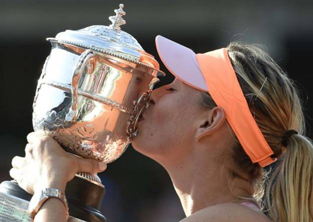 Вчера Мария Шарапова взяла свой второй кубок Roland Garros, выиграв у румынки Симоны Халеп. И в воскресенья она с удовольствием устроила фотосессию со своим трофеем на фоне знаковой Эйфелевой башни.