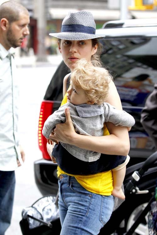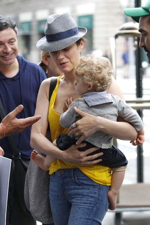 Марион Котийяр была замечена в Нью-Йорке, когда приехала со своим сыном Марселем в отель. Актриса выглядела очень по-летнему, в своей яркой одежде: желтой майке и светлых джинсах, дополнял наряд звезды ярка красная сумочка.