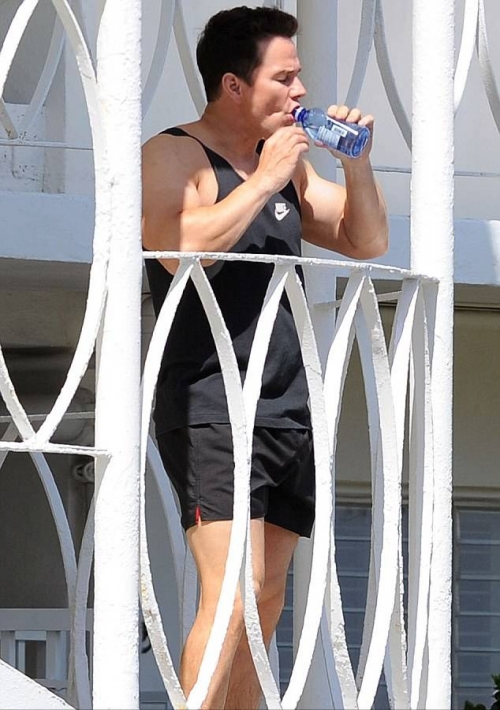 Актер был замечен в районе Саус Бич в одних длинных шортах, он что-то сосредоточено слушал на плеере. Тренированное тело звезды на 100 процентов соответствует его новой роли, где он играет одного из бодибилдера, который со своим другом, решают похитить человека с целью получить за него выкуп.