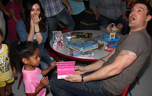 Недавно они стали родителями во второй раз и, похоже, что их родительские навыки пригодились им в полной мере. Меган Фокс и Брайан Острин Грин приняли участие в благотворительной акции, в ходе которой дарили игрушки детям, которые находятся на лечении в детском отделении медицинского центра Harbor UCLA, Калифорния.