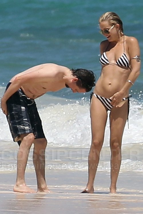 16 марта Кейт Хадсон с Мэттью Беллами отдыхали на побережье курортного города Кункуна в Мексике. Несмотря на то, что 32-летняя актриса недавно родила своему молодому человеку сына, в бикини выглядела она хорошо.