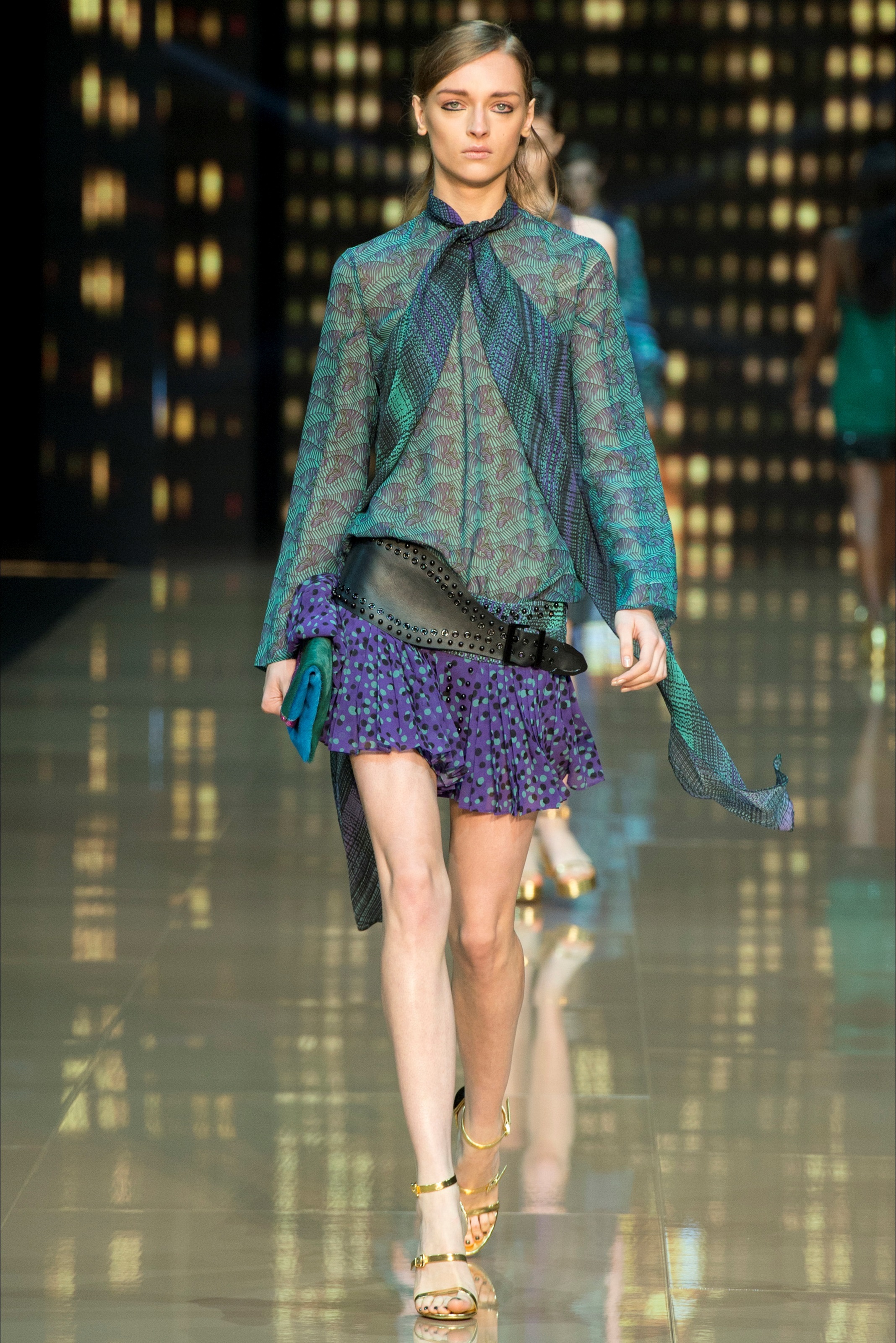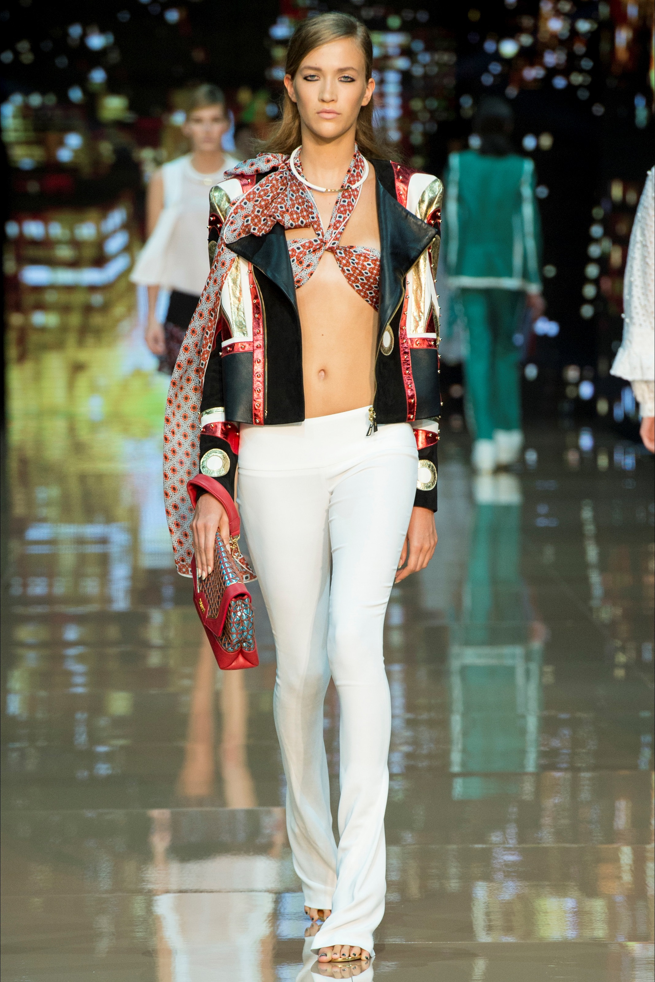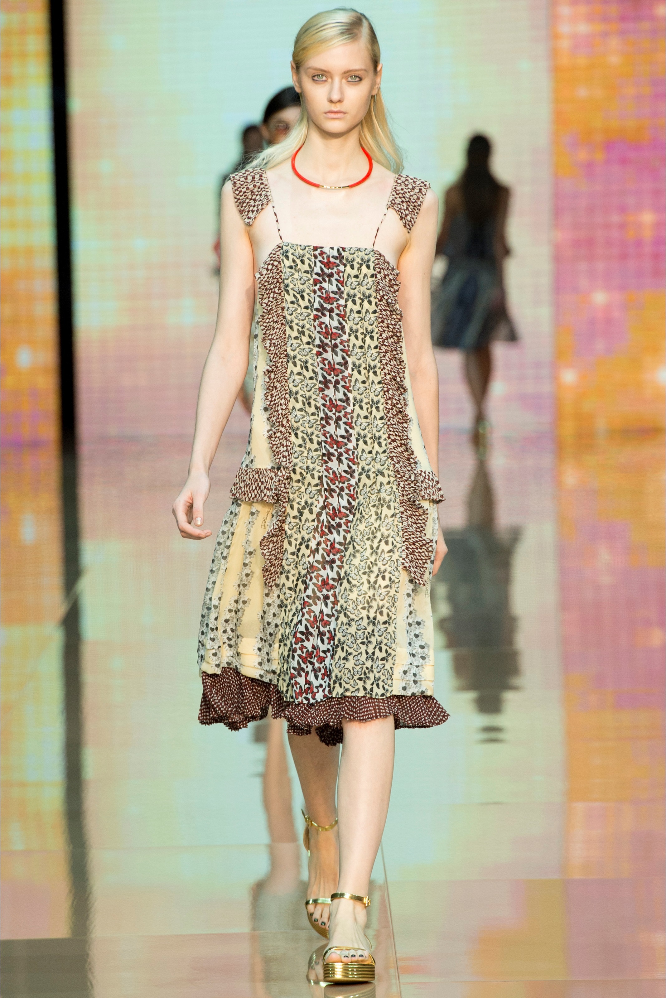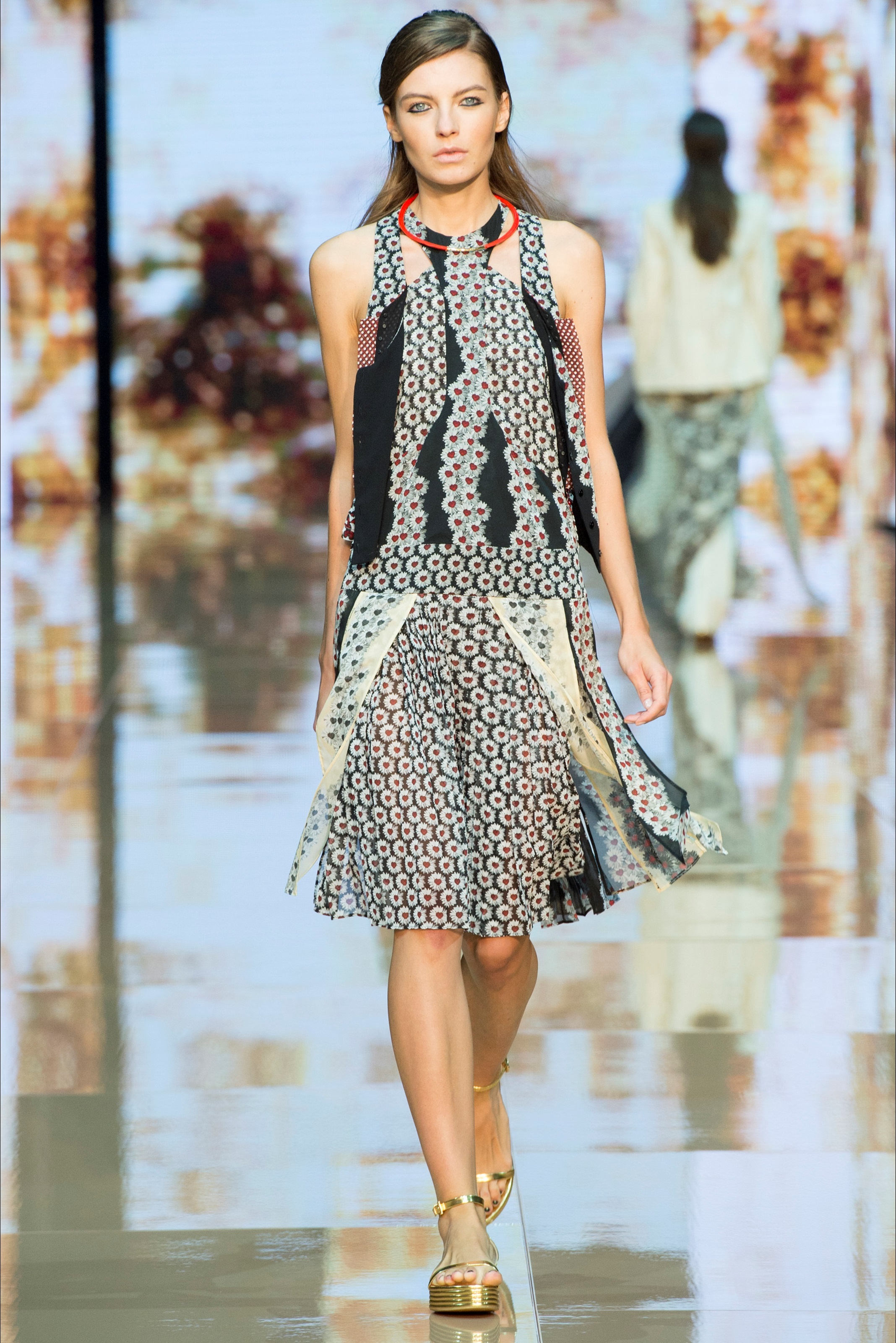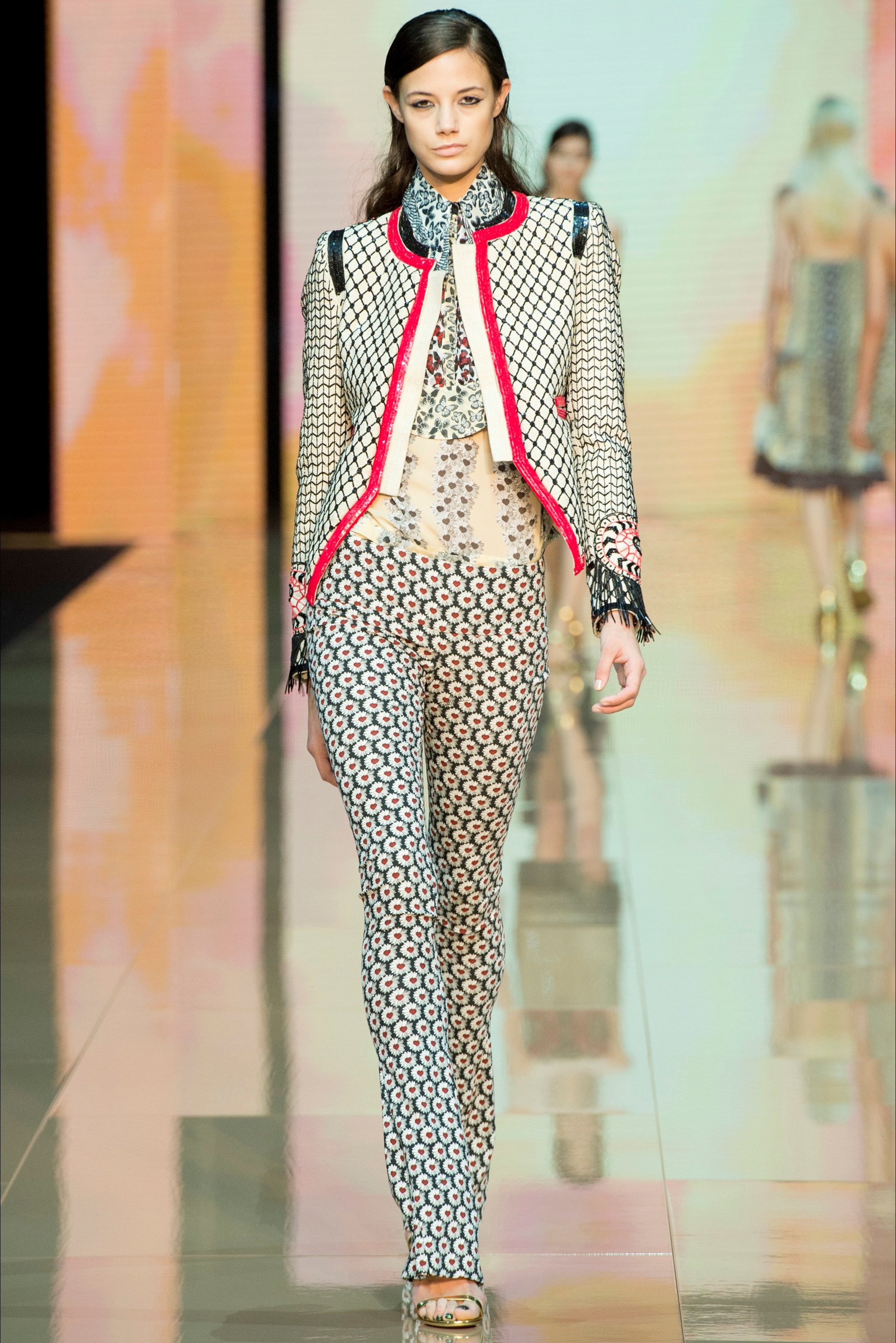 Дизайнер и модный вдохновитель Роберто Кавали в коллекции весна/лето 2015 остался верен себе. Нет, на это раз вы не увидите традиционные изображения животных, но созданный мир мерцающих принтов на легких платьях и смокингах, расклешенных брюках и аксессуарах заиграет в вашем воображении яркими красками с отголосками силуэтов 60-70-х годов.