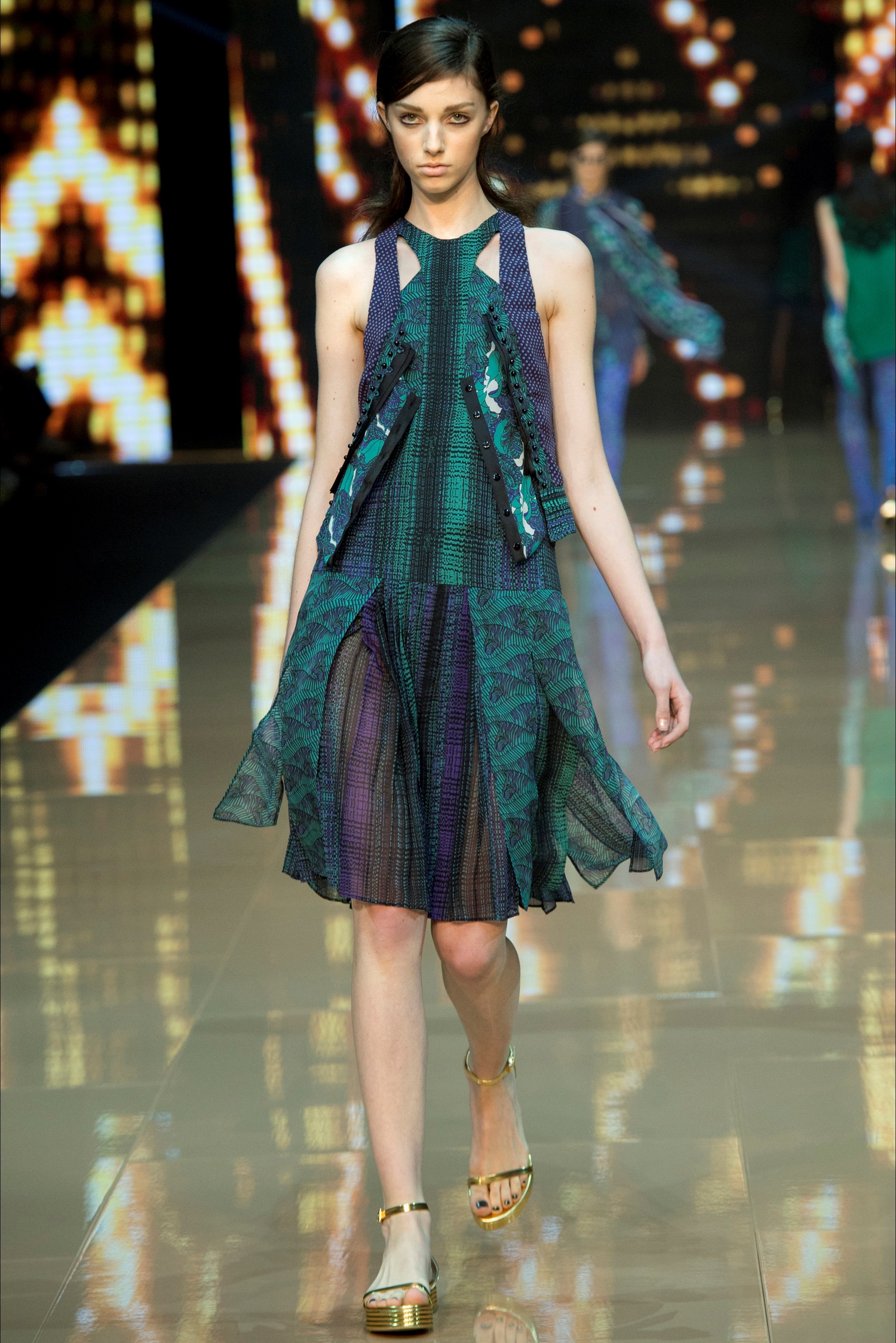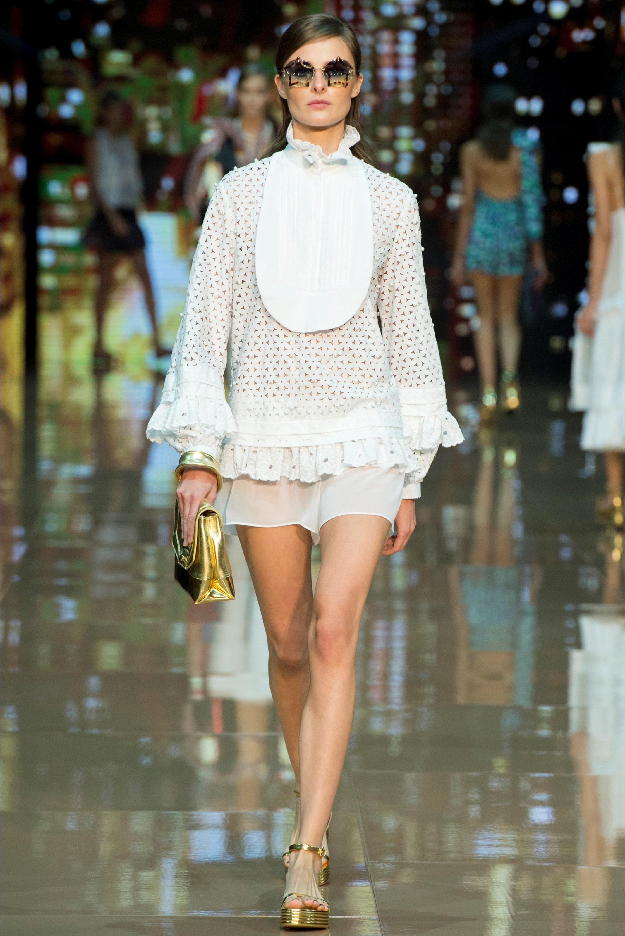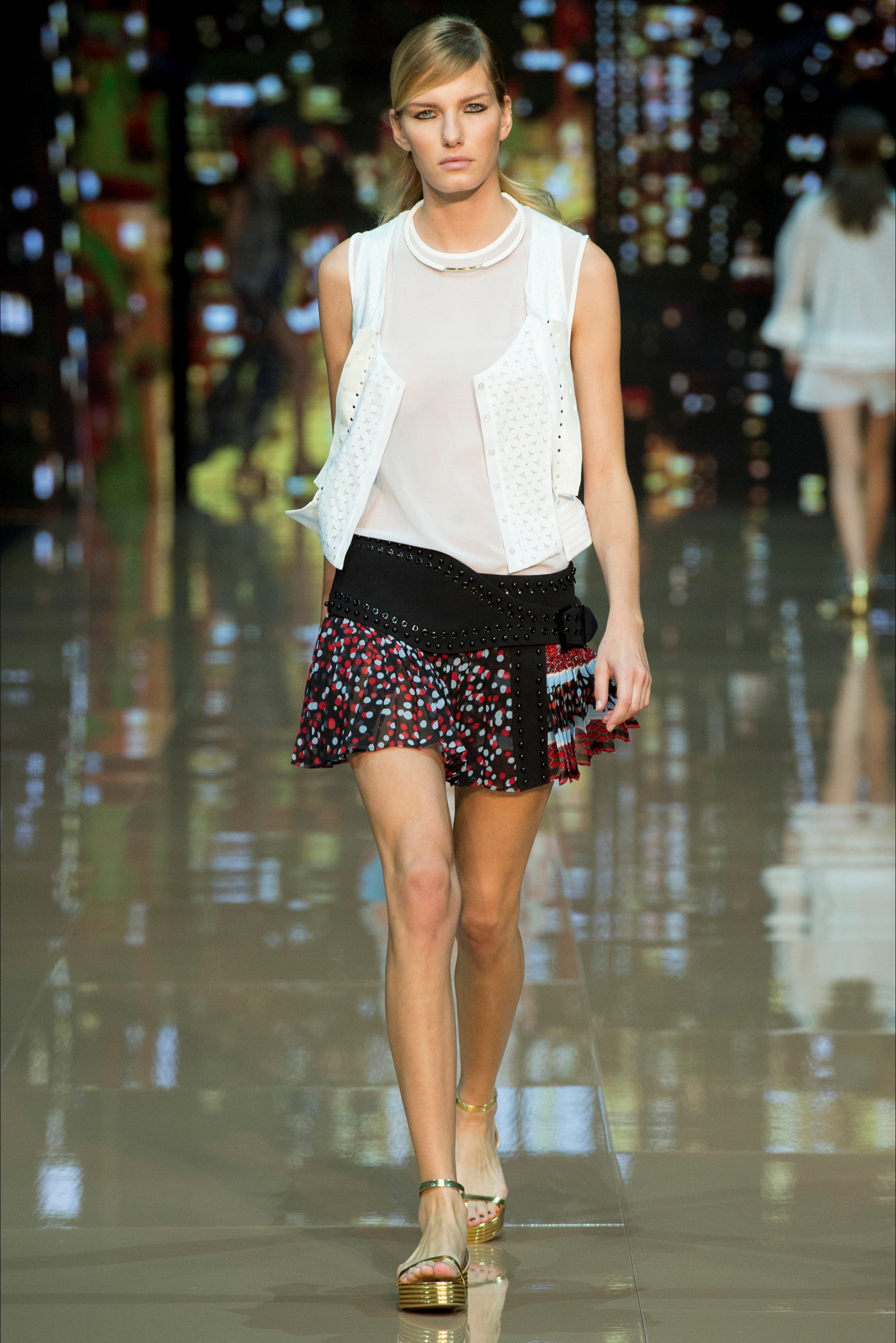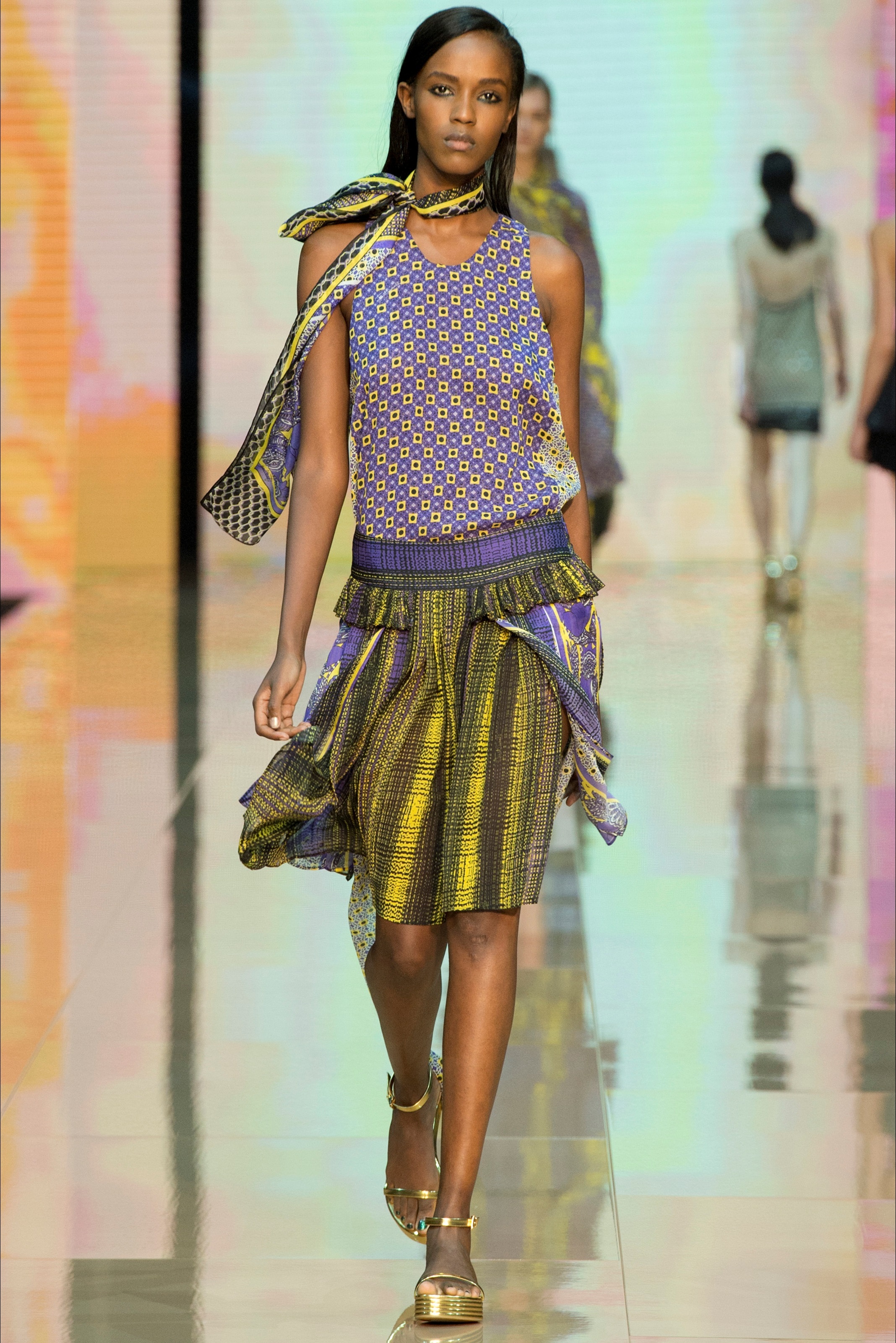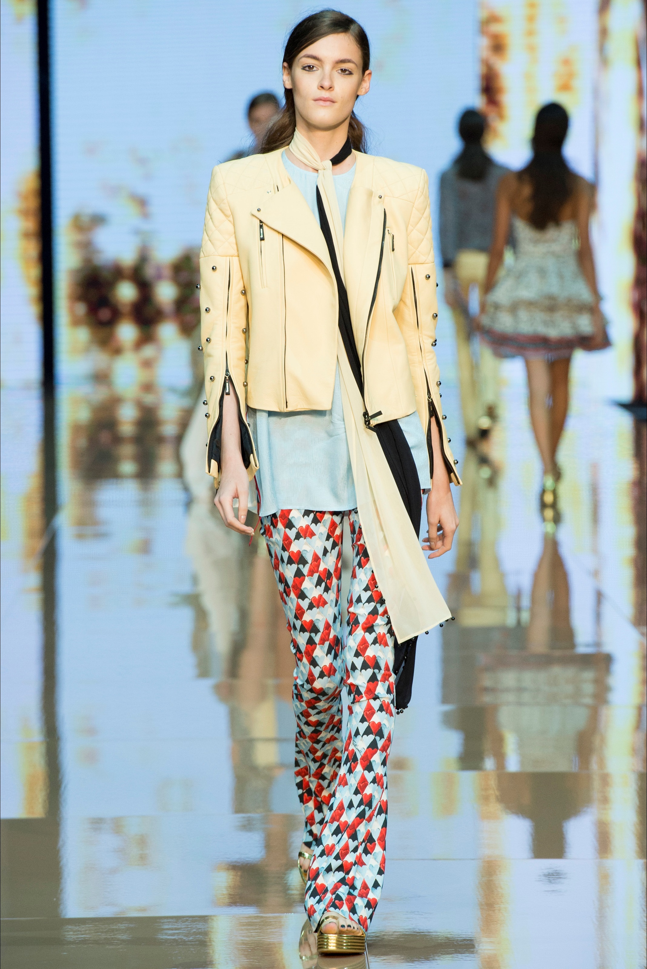 Дизайнер и модный вдохновитель Роберто Кавали в коллекции весна/лето 2015 остался верен себе. Нет, на это раз вы не увидите традиционные изображения животных, но созданный мир мерцающих принтов на легких платьях и смокингах, расклешенных брюках и аксессуарах заиграет в вашем воображении яркими красками с отголосками силуэтов 60-70-х годов.