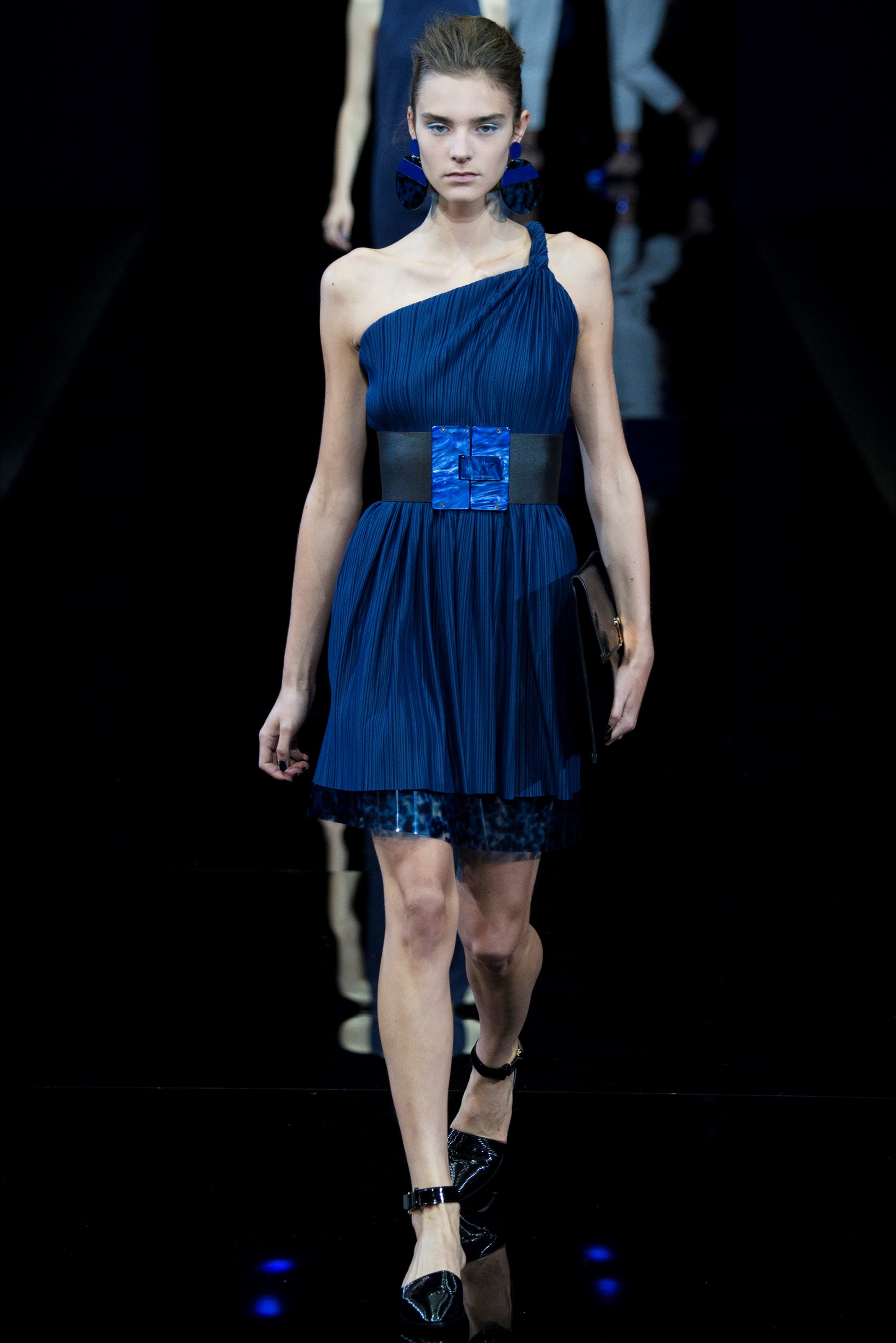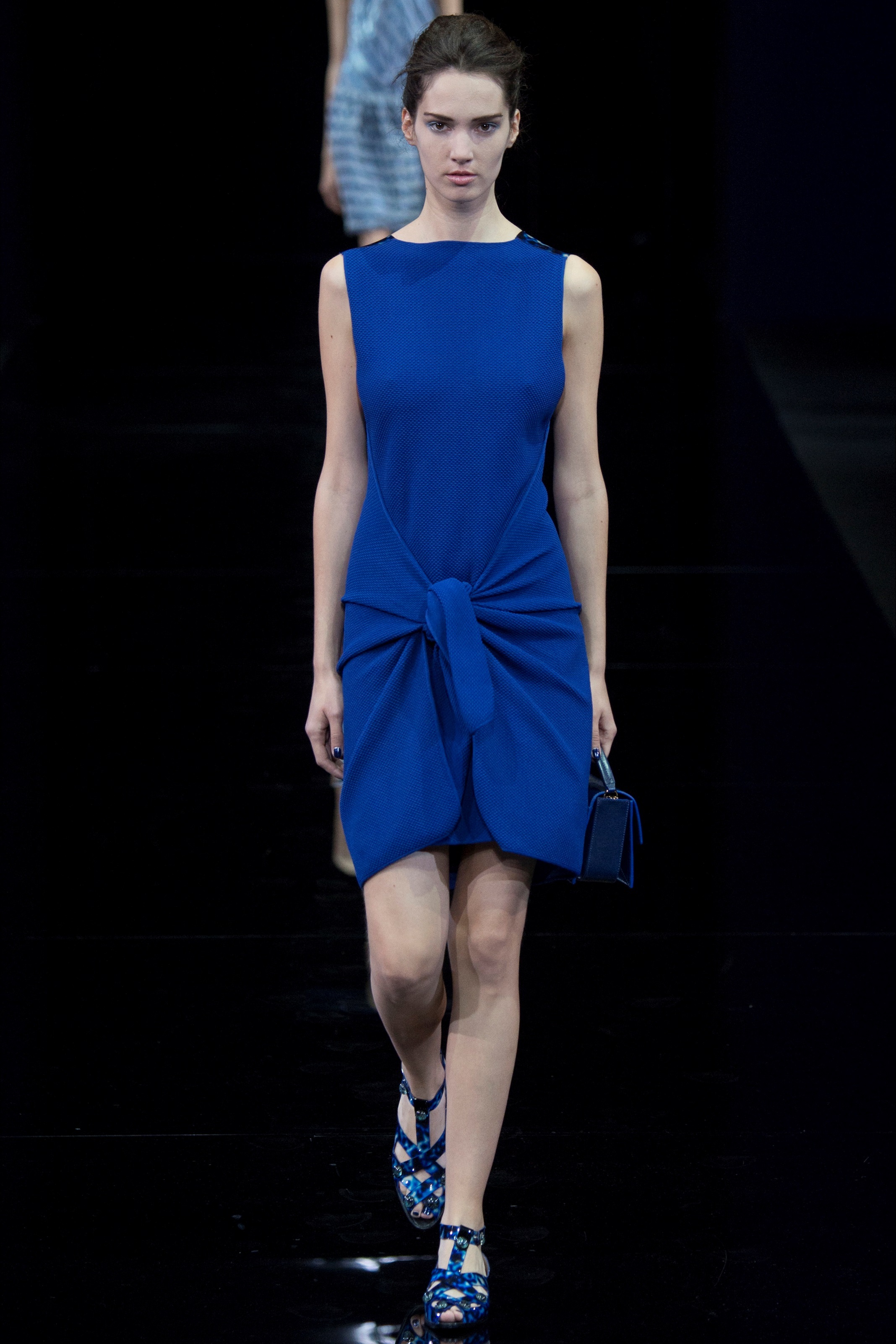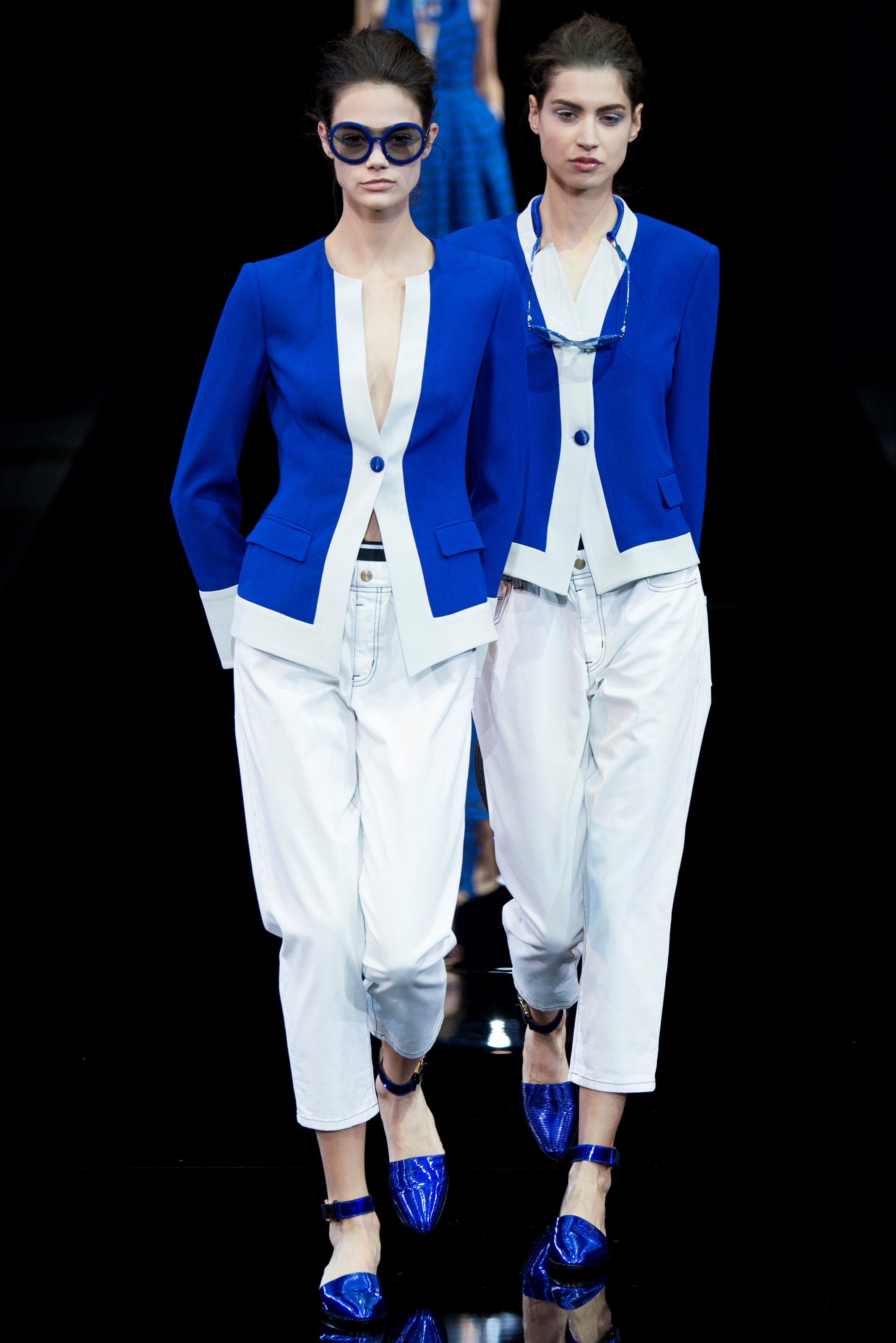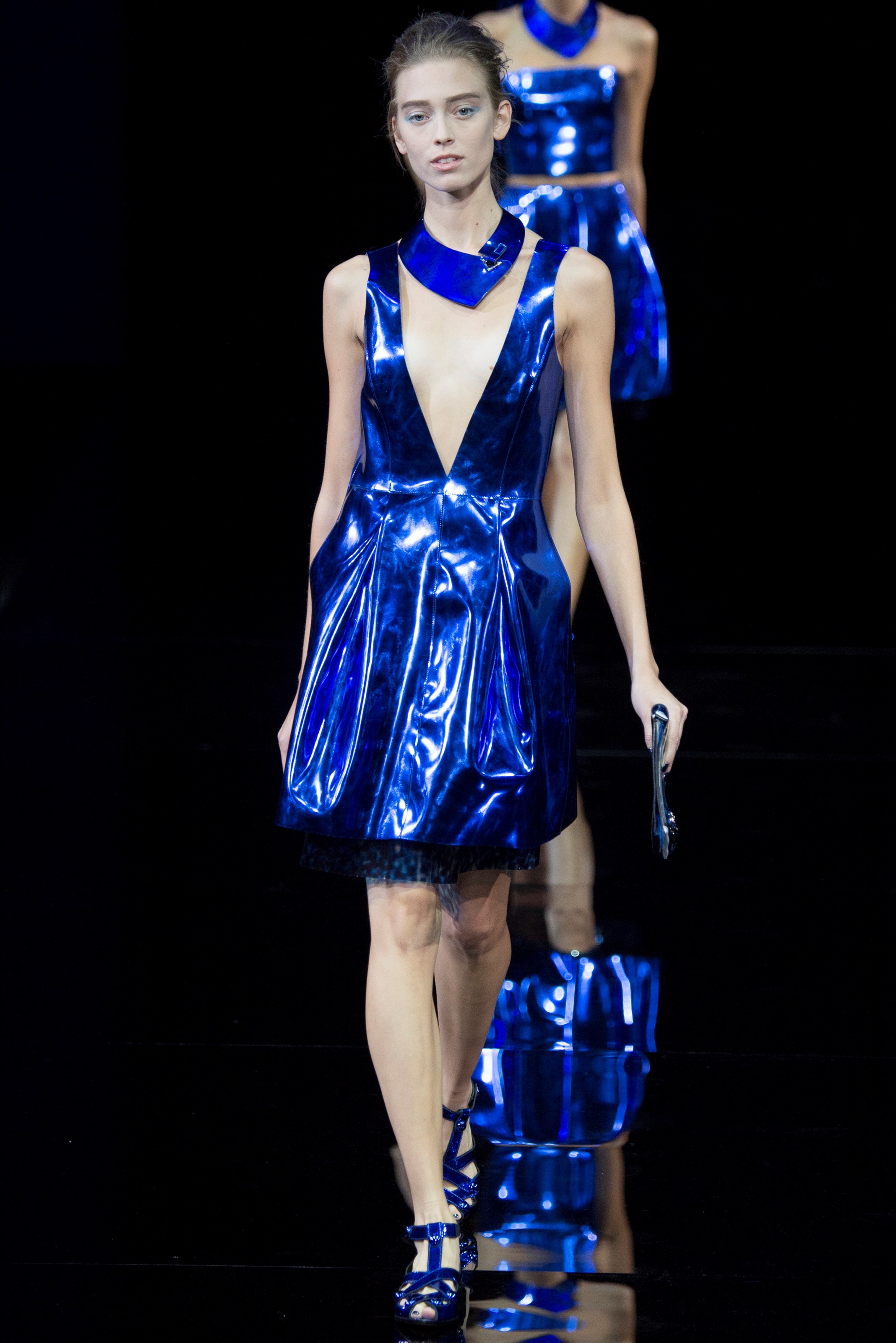Всевозможные оттенки синего привез Emporio Armani для показа на Неделе моды в Милане. Насыщенность и красотой цвета, который дизайнер почерпнул из прекрасных явлений природы: неба, моря, голубых гор, драгоценных камней, таких как сапфиры, аквамарины - именно они внесли нотку возрождения блюза в коллекцию Emporio весна / лето 2015.