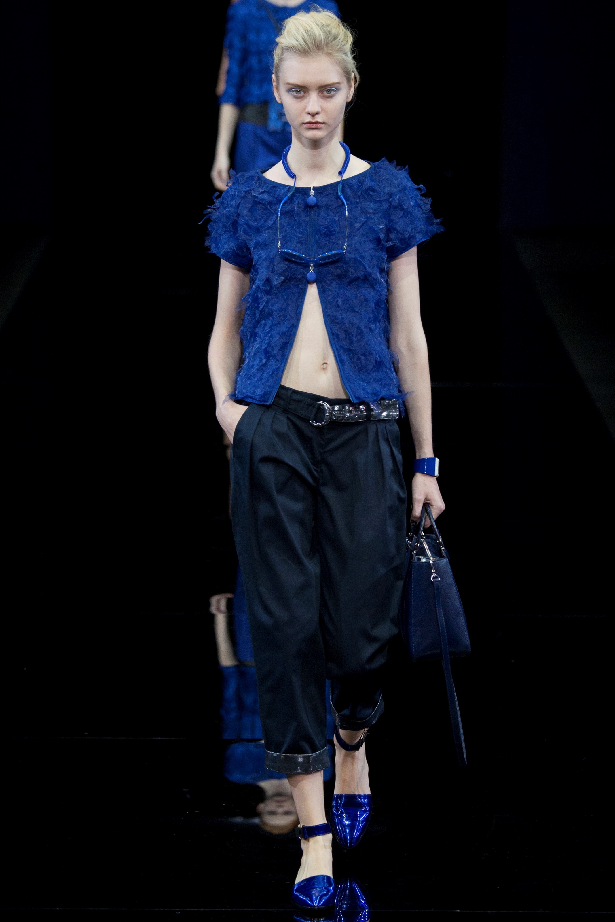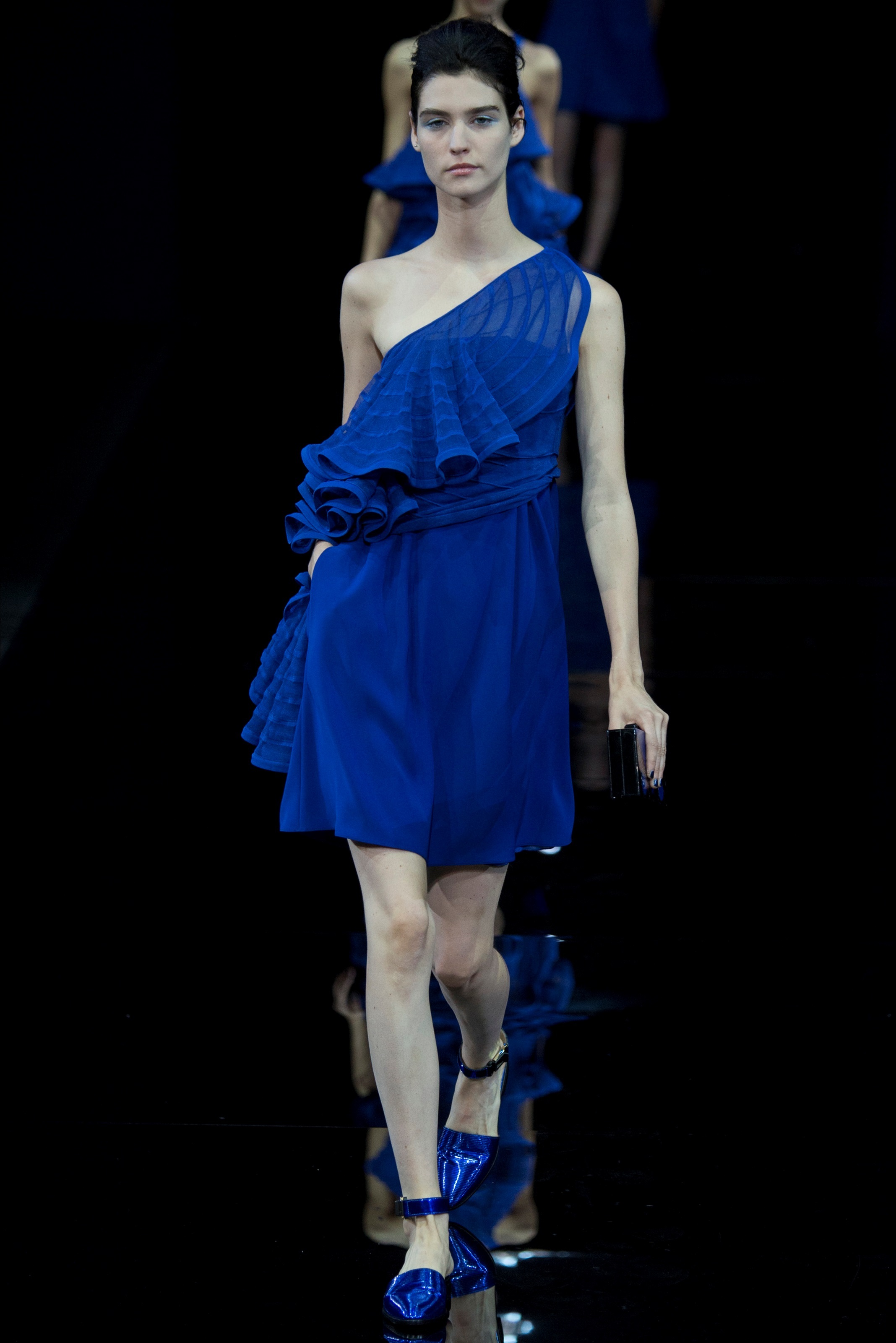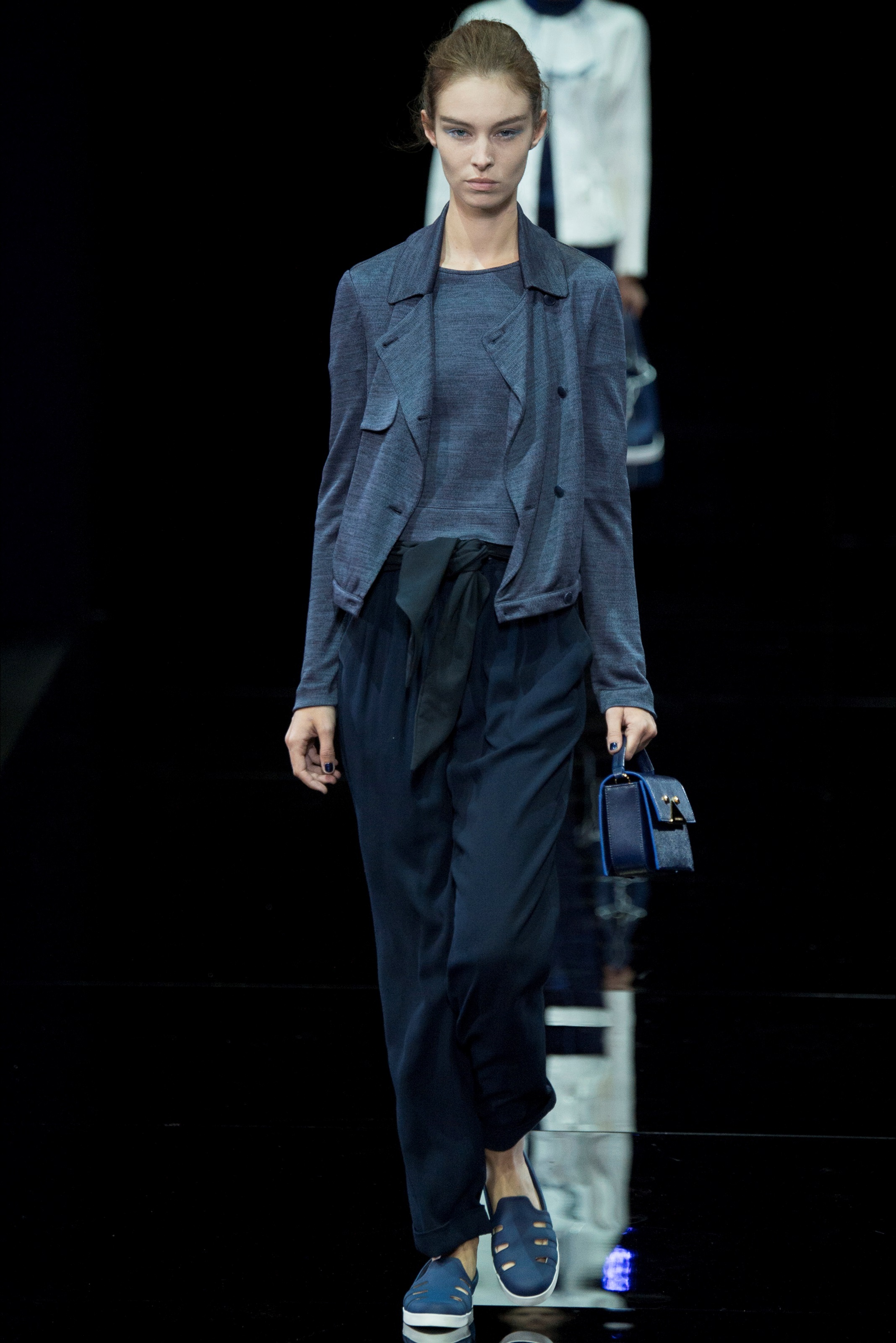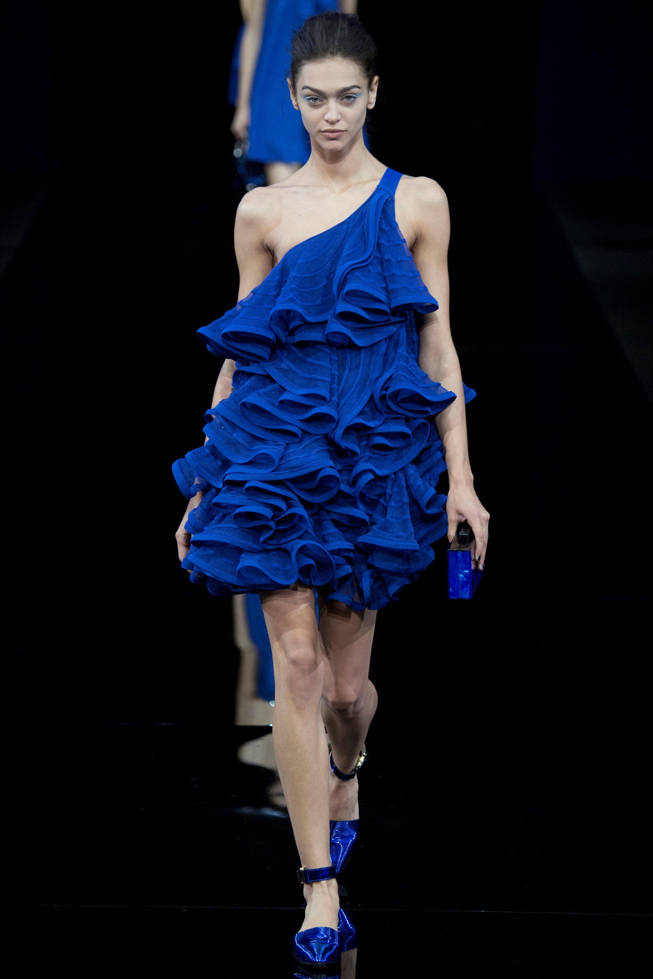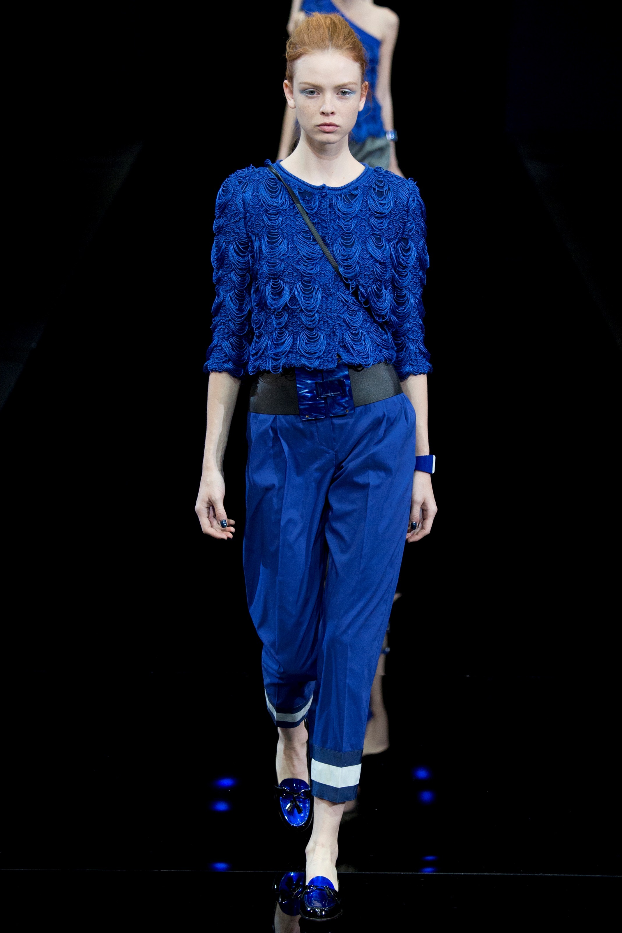 Всевозможные оттенки синего привез Emporio Armani для показа на Неделе моды в Милане. Насыщенность и красотой цвета, который дизайнер почерпнул из прекрасных явлений природы: неба, моря, голубых гор, драгоценных камней, таких как сапфиры, аквамарины - именно они внесли нотку возрождения блюза в коллекцию Emporio весна / лето 2015.