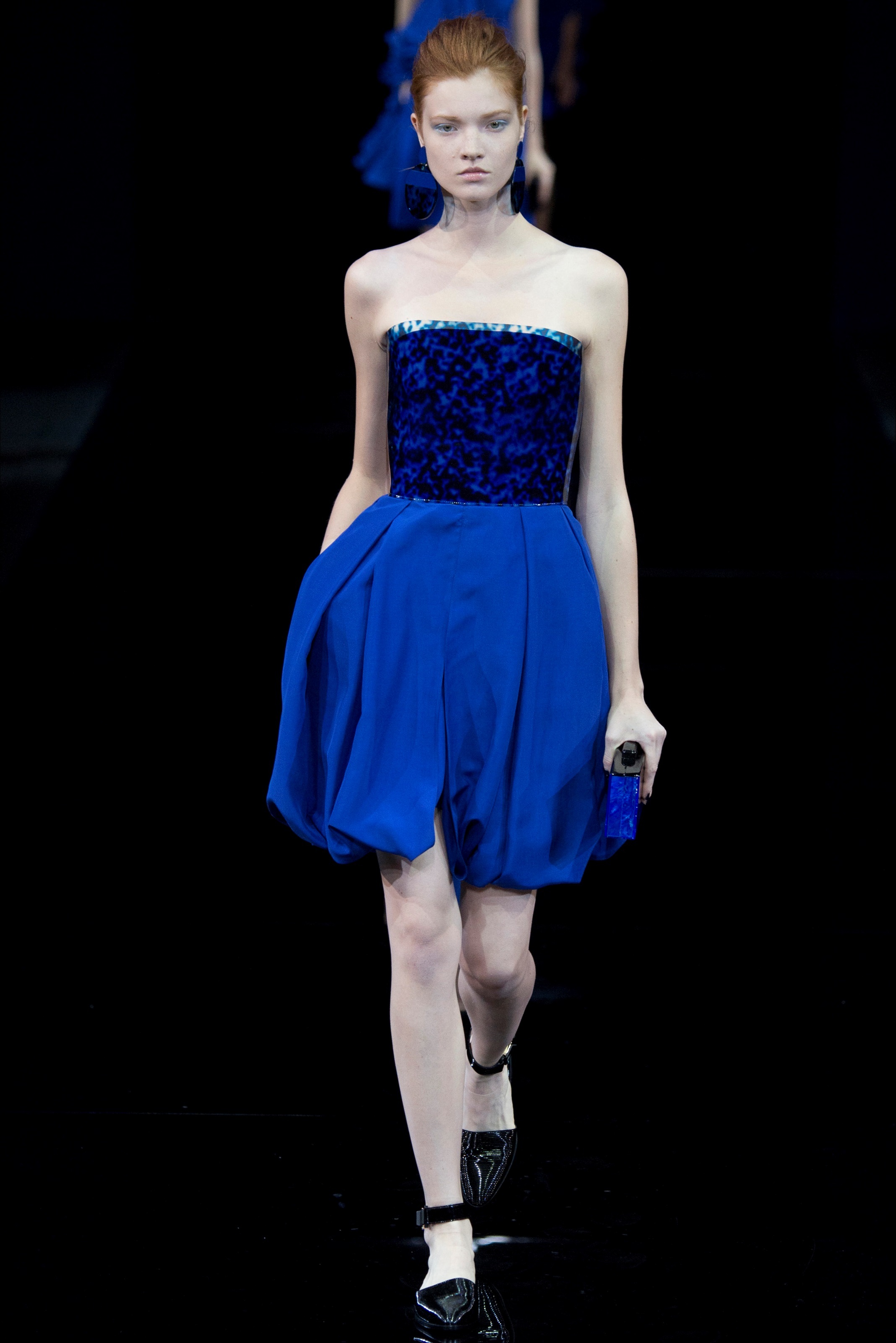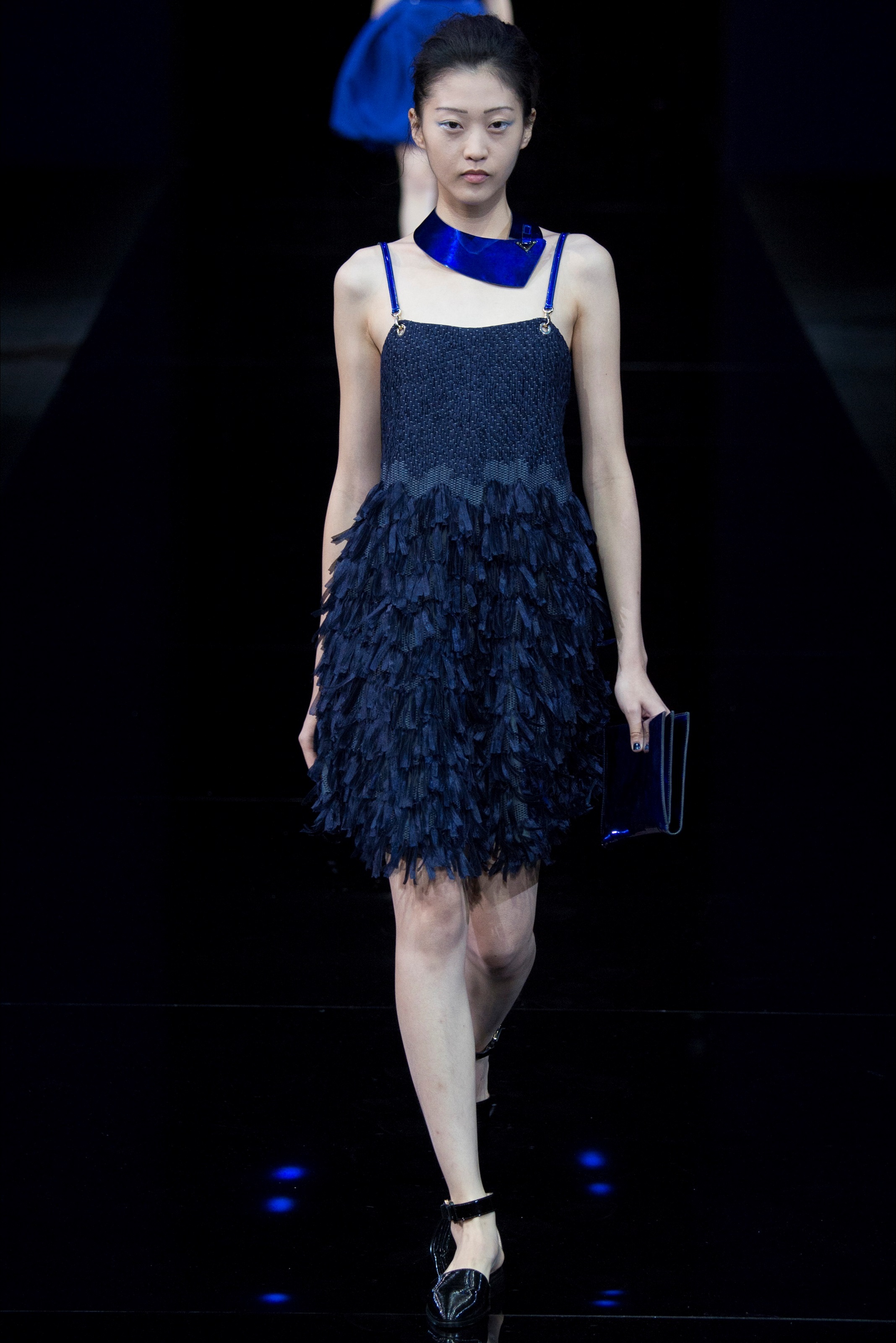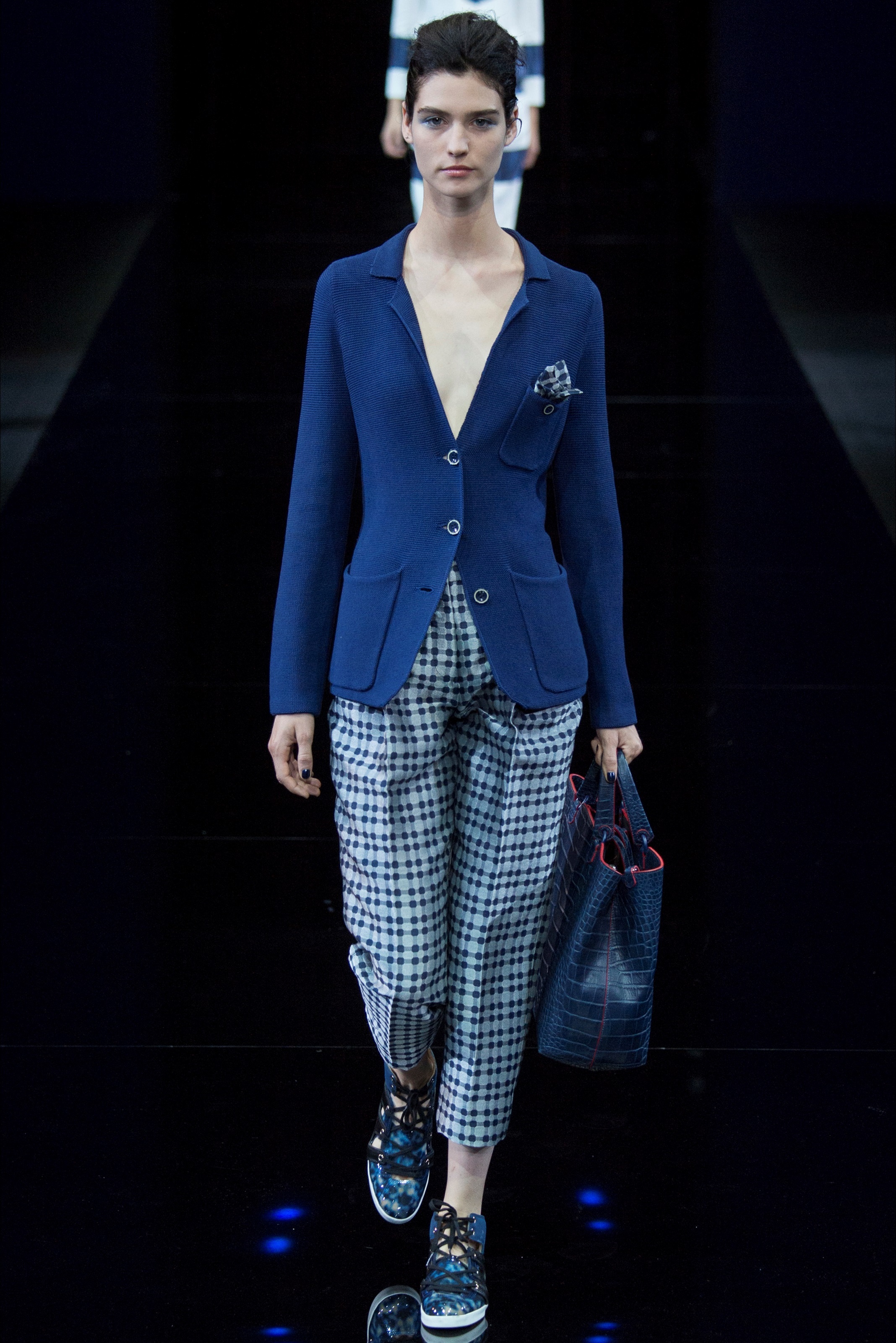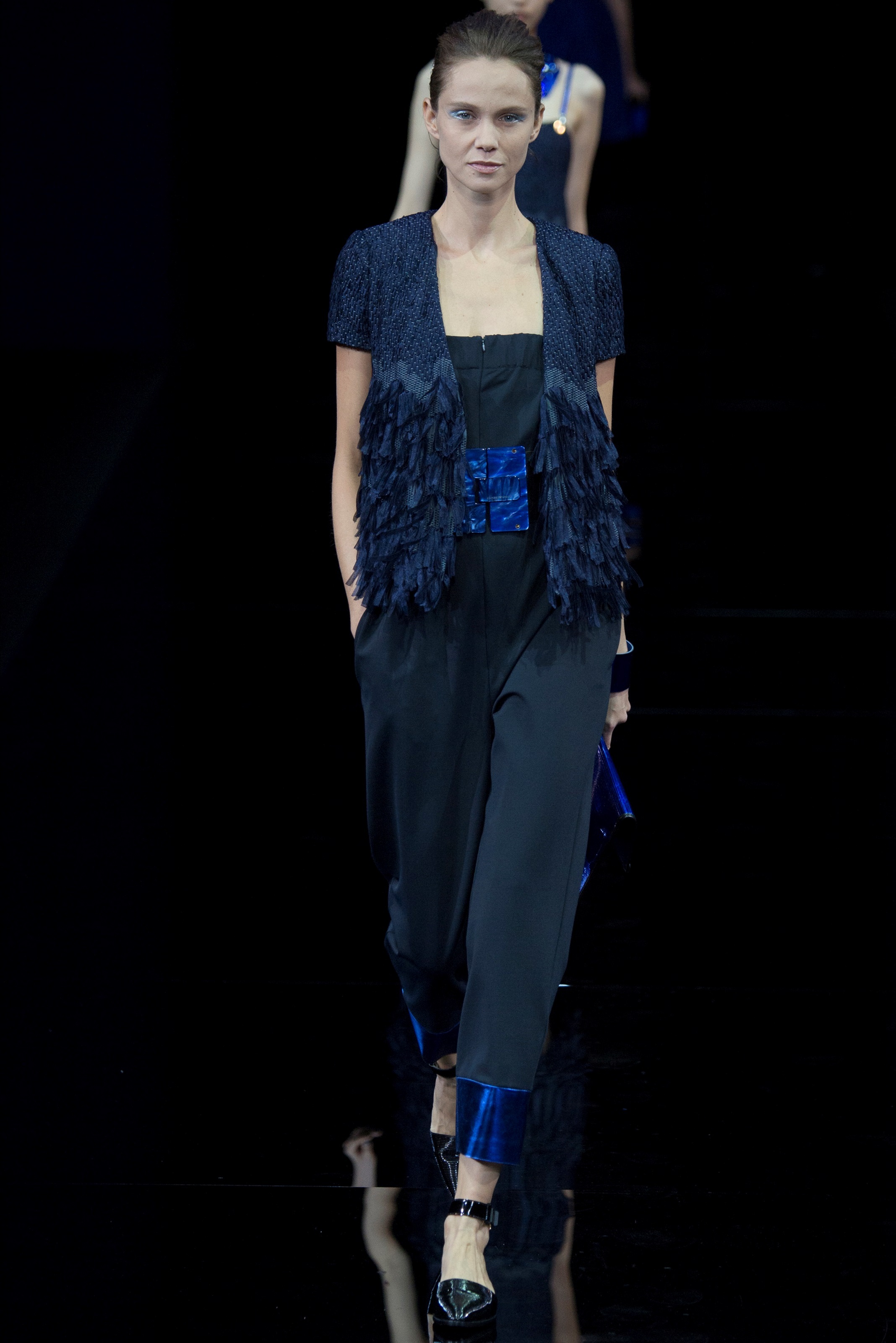 Всевозможные оттенки синего привез Emporio Armani для показа на Неделе моды в Милане. Насыщенность и красотой цвета, который дизайнер почерпнул из прекрасных явлений природы: неба, моря, голубых гор, драгоценных камней, таких как сапфиры, аквамарины - именно они внесли нотку возрождения блюза в коллекцию Emporio весна / лето 2015.