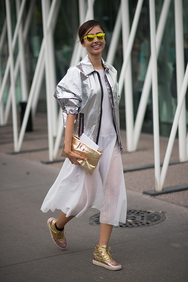 Взгляните на тенденции уличного стиля проявившие себя с первого дня Миланской недели моды. Тематические сумки, меховые аксессуары, спортивно-шикарные каблуки и конечно же изделия из последних коллекций (некоторые из них настолько новые, что еще пол часа назад они были представлены широкой публике, а сейчас новая владелица красуется в них перед камерами для лучшего Street Style образа) все это не ускользнуло от камер модных папарацци. Важный момент: обязательный must have сезона весна/лето 2015 года - зеркальные солнцезащитные очки.