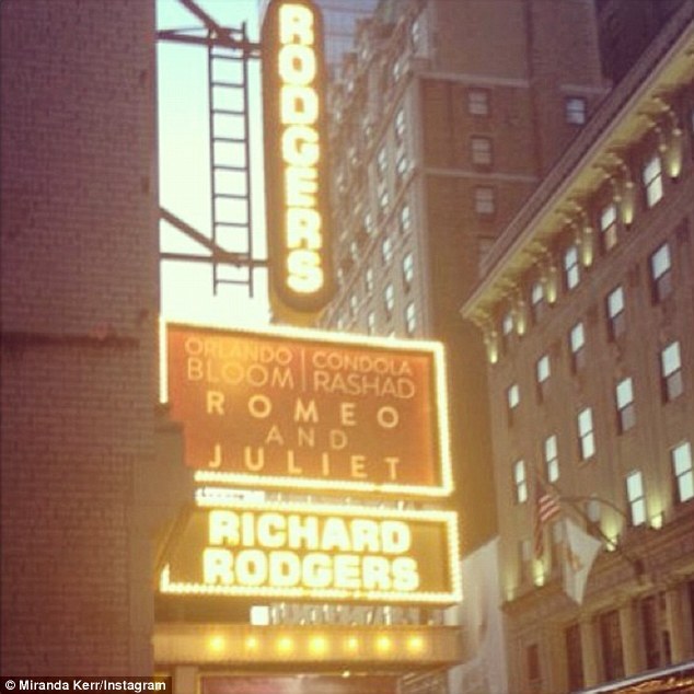 В субботу вечером на Бродвее состоялся предварительный показ спектакля по пьесе Шекспира «Ромео и Джульетта», где впервые Джульетту сыграла темнокожая актриса. Роль Ромео исполнил Орландо Блум. Миранда Керр не могла не прийти на показ, где ее муж пробует себя в амплуа театрального актера.