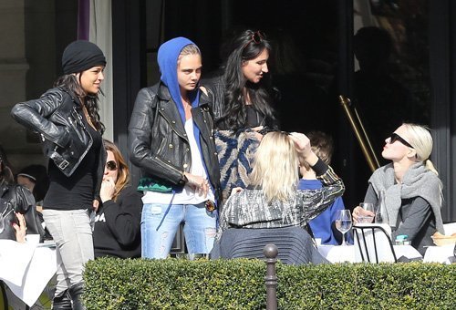 В воскресенье днем в Париже были замечены Мишель Родригес и Кара Делевинь. Пара с друзьями посетила один из фешенебельных ресторанов города L'Avenue.