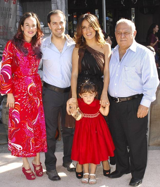 Сальма Хайек с дочерью Валентиной, отцом, братом и его женой