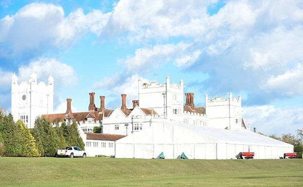 Пара была замечена в субботу поздно вечером, когда подъезжала к месту его проведения, отелю Danesfield House Hotel & Spa.
