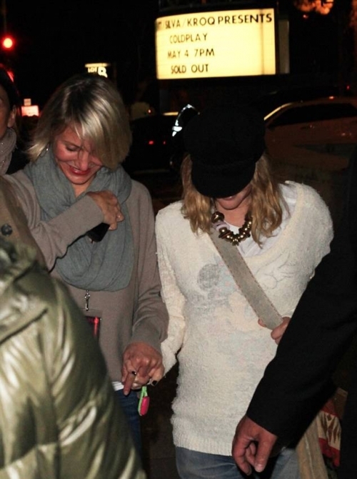 Так что неудивительно, что была замечена и Кэмирон Диаз. Актриса была не одна, с ней пришла ее подруга и коллега по фильму «Ангелы Чарли» Дрю Бэрримор, которая пыталась остаться неузнанной, в свитере с Мини Маус и бейсболкой, натянутой почти на лицо.