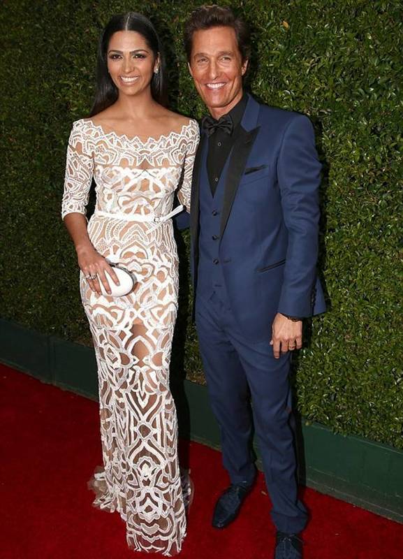 Мэттью МакКонахи как всегда не расставался со своей красавицей женой, бразильской моделью Камилой Алвес, которая была одета в платье Zuhair Murad.