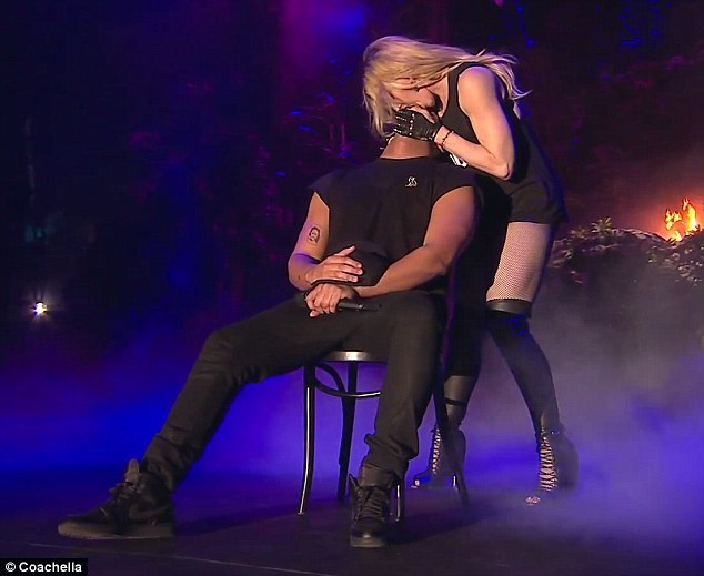 Пара выступала на фестивале Коачелла, когда 56-летняя певица решила осчастливить своего 28-летнего напарника по сцене французским поцелуем.