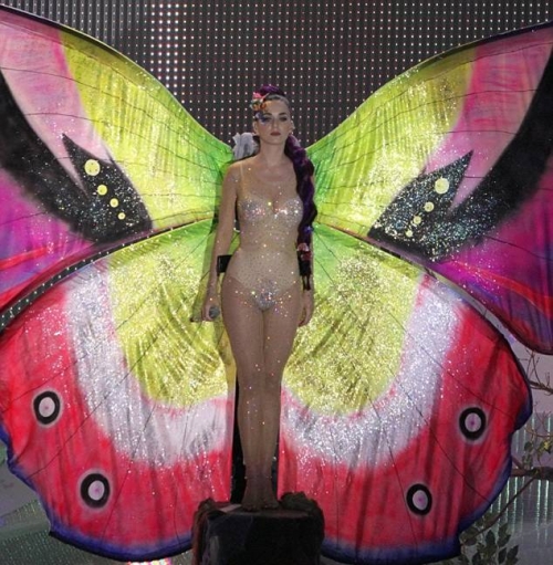 Она известна тем, что любит экспериментировать со воими нарядами для концертов. Но вчера вечером Кэти Перри показала, что иногда эксперименты бывают не очень удачные.