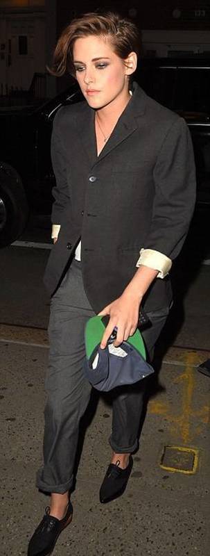 Между тем надо заметить, что в последнее время стиль Кристен все больше отклоняется в сторону, так называемого, андрогинного. Например, накануне она была замечена в брюках и мужском пиджаке.