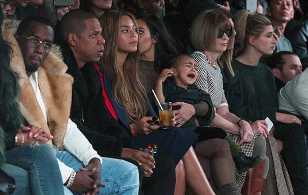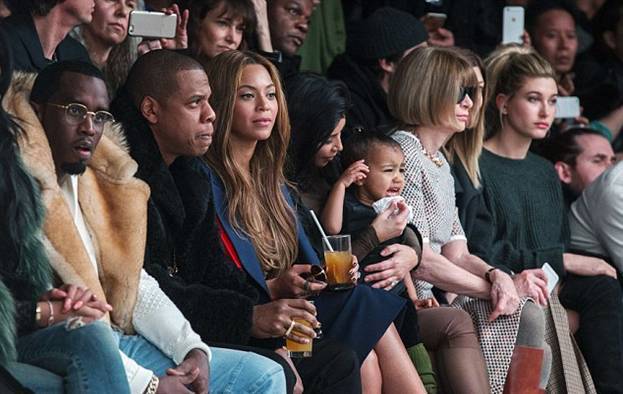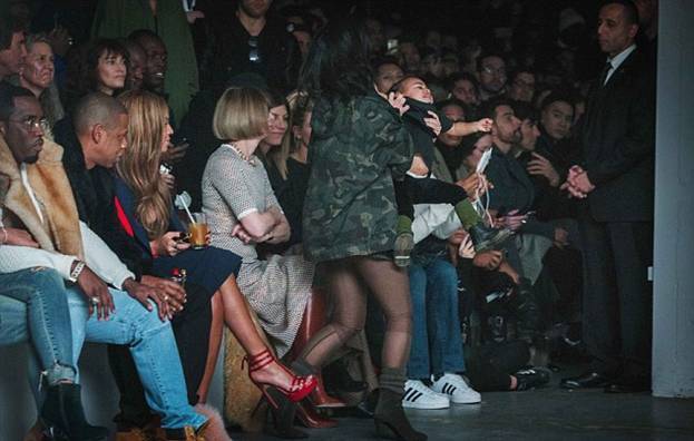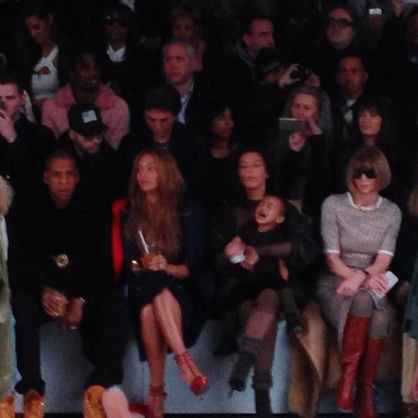 На шоу пришли главные болельщицы дизайнера, его супруга Ким Кардашян и годовалая дочь Норт или, как ее называют родные, Нори. Рядом расположились, с одной стороны Бейонсе и Джей-Зи, с другой, редактор американского Vogue Анна Винтур.
