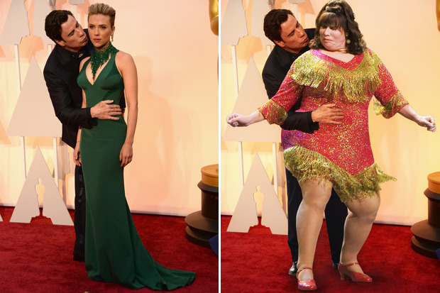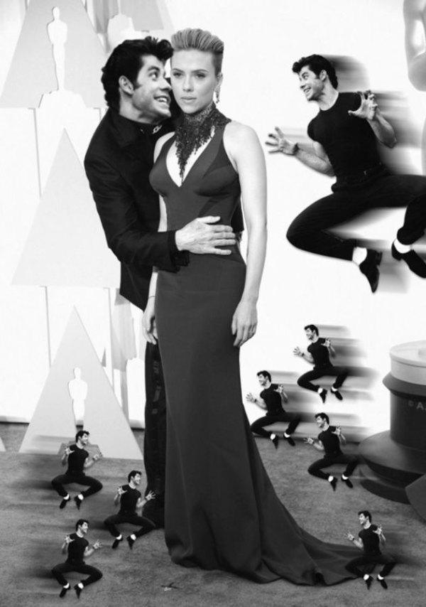 На красной ковровой дорожке Оскара Джон Траволта напугал Скарлетт Йоханссон. Он довольно неожиданно решил поцеловать актрису, подкравшись к ней сзади.