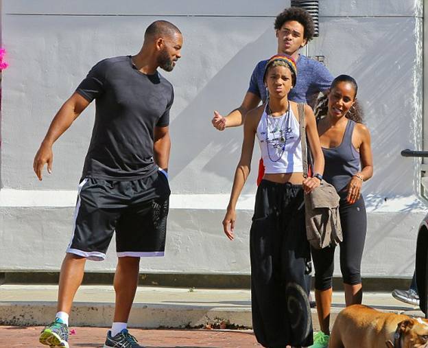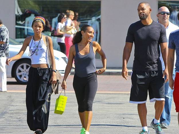 Пара в окружение своих детей, а именно виновницы следствия Уиллоу и сына Уилла от предыдущих отношений Трея, покидала один из супермаркетов Малибу.