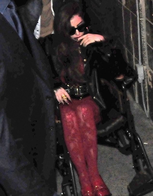 Несмотря на то, что передвигаться Леди Гага сейчас может только в инвалидном кресле, вечер пятницы она провела довольно насыщенно и необычно. Певица была замечена вместе со своим парнем Тейлором Кинни на пути в бар «Ричард», который находится на знаменитой улице Чикаго Мичиган авеню.