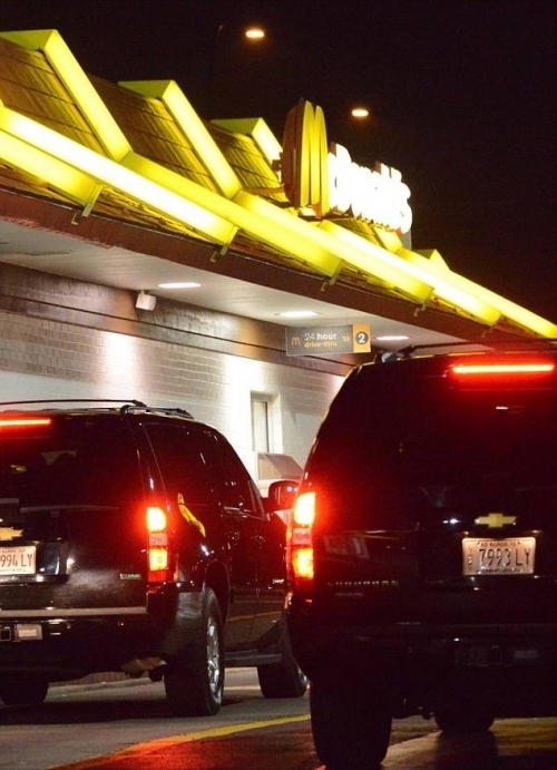 Уже возвращаясь к себе в отель, они заехали в обычный Макдональдс, где взяли себе еду на вынос.