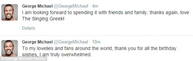 Несмотря на лечение в швейцарской клинике от наркомании, Джордж Майкл смог поблагодарить своих поклонников в твиттере за поздравления с днем рождения