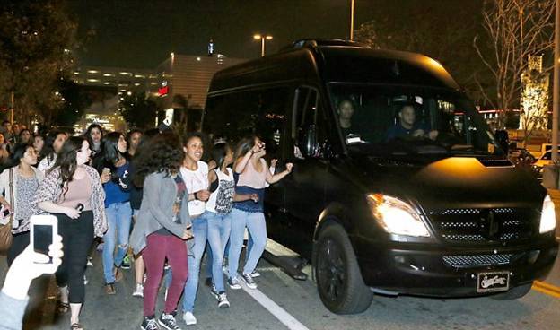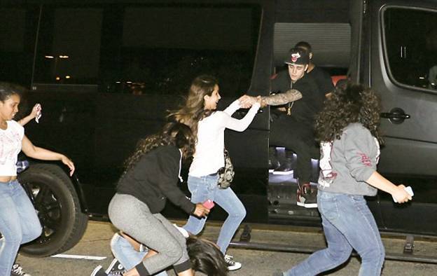 В четверг микроавтобус поп-звезды был окружен фанатками, которые хотели пообщаться со своим кумиром. Он выезжал с парковки известного лос-анджелесского торгового центра Grove, где проходила презентация нового музыкального альбома Дрейка Белла. Водитель микроавтобуса чуть затормозил, а Джастин приоткрыл дверь, чтобы иметь возможность перекинуться парой слов с поклонницами.