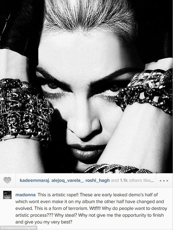 В сети же Мадонна написала: " Я прошу моих поклонников, которые уважают меня, как художника и человека, не связываться с покупкой, размещением и распространением моей неоконченной музыки и изображений. Я надеюсь и молюсь, что мы найдем в скором времени виновного в утечке информации...".