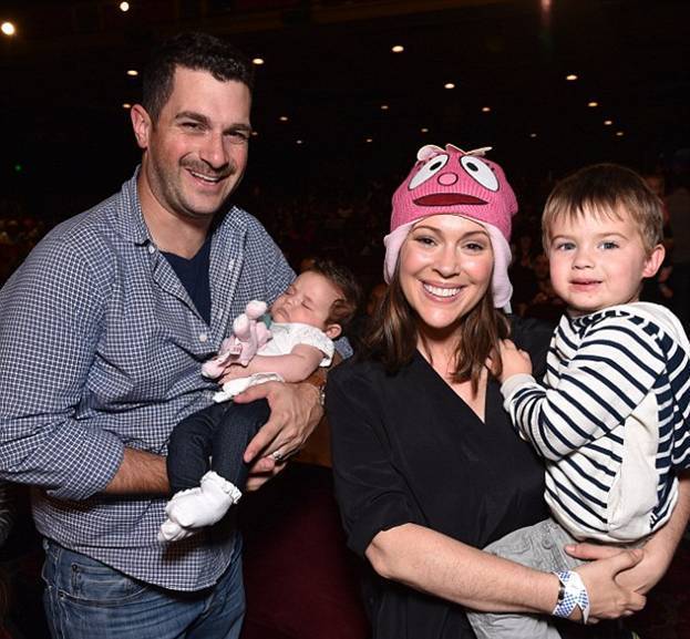 Алисса Милано с гордостью впервые показала свою двухмесячную дочь Элизабеллу, совершив в субботу семейный поход на детский музыкальный спектакль "Yo Gabba Gabba! LIVE!".