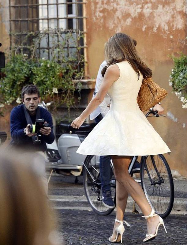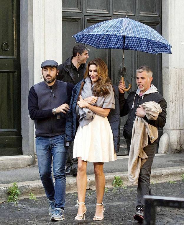 Надо заметить, что Синди показала себя настоящим профессионалом. Несмотря на плохую погоду - температуру воздуха всего около 10°C тепла и моросящий дождь, она несколько часов провела в летнем платье.
