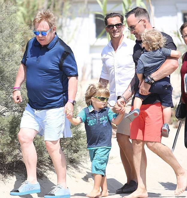 Элтон Джон, его партнер Дэвид Ферниш и их дети - трехлетний Захари и годовалый Илия, сейчас отдыхают в Сен-Тропе.