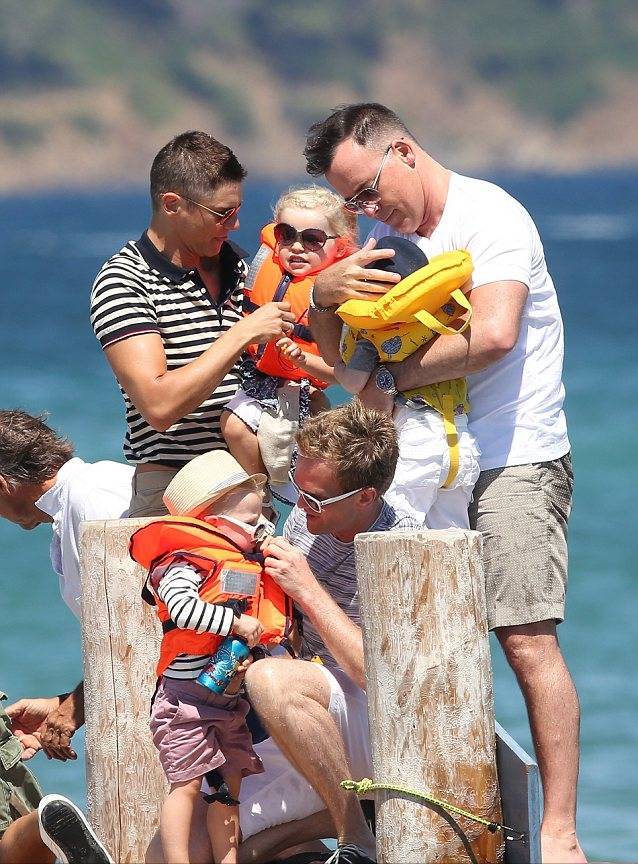 40-летний Нил со своим партнером Дэвидом Бартка и их трехлетними близнецами Гидеоном и Хапер, а также 50-летний Дэвид с сыновьями - трехлетним Закари и семимесячным Илии, были замечены, когда отдыхали на знаменитом частном пляже «Клуб 55».