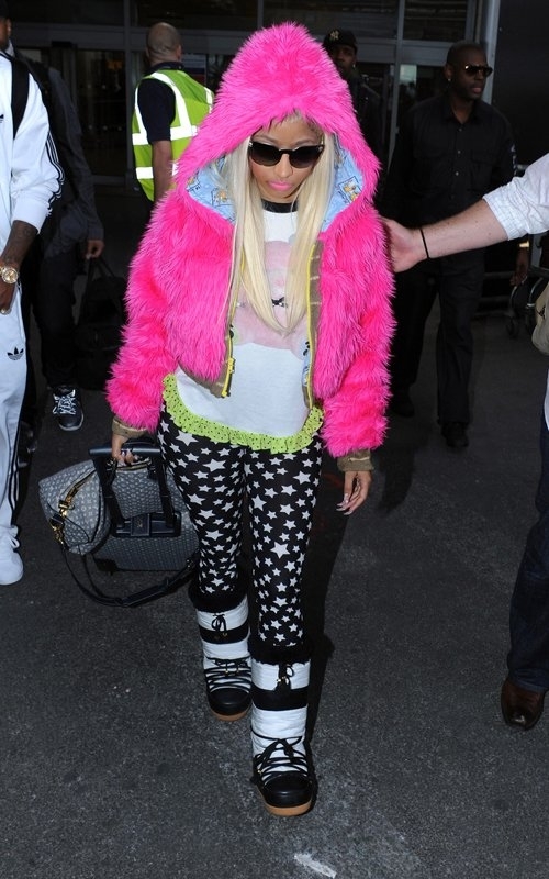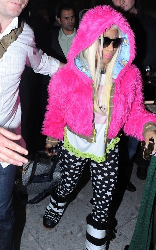 Одетая в розовый искусственный полушубок, певица прилетела в Лондон, ее заметили в аэропорту Хитроу 17 апреля. Ники объявила, что она начинает продвигать свой аромат.