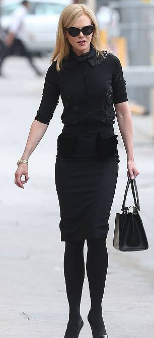 Во вторник Николь Кидман была замечена по дороге на передачу Джимми Киммела, где она рекламировала свой новый фильм "Возмездие". Актриса была одета в траурный наряд. На ней была та же одежда, что она носила несколько часов назад на похоронах своей подруги Лорен Скотт.
