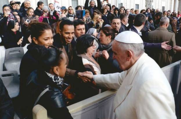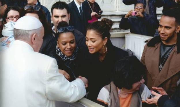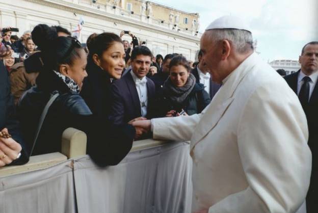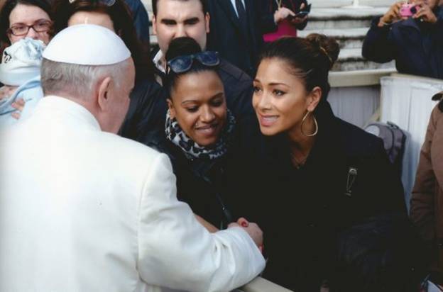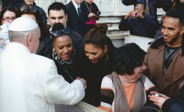 На снимка видно, что счастливые Николь и Льюис смогли лично пообщаться с Папой Франциско. Несмотря на то, что об их примирении говорили с конца прошлого года, это первые их совместные фотографии.