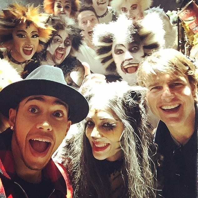 Последняя совместная фотография Николь и Льюиса, сделанная с Томом Крузом за кулисами мюзикла "Кошки"