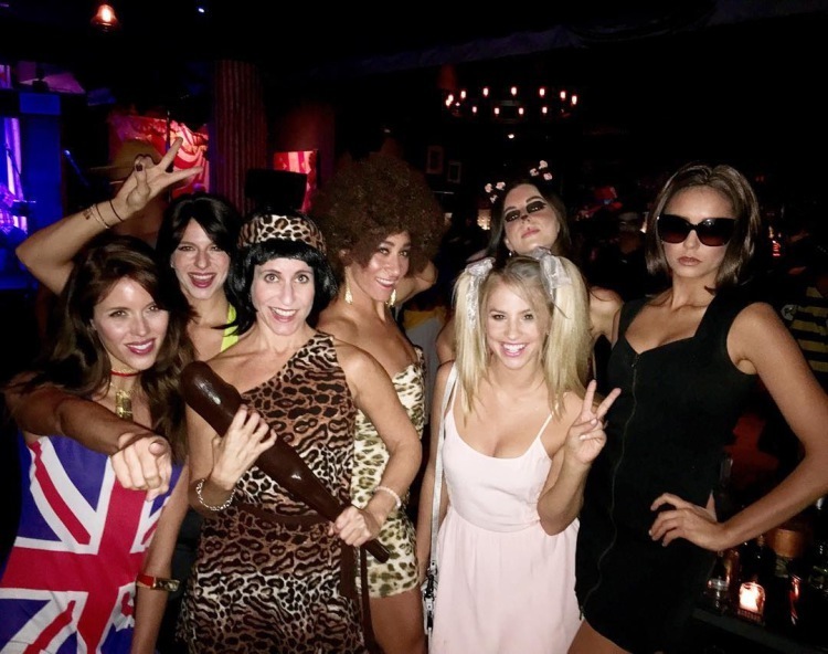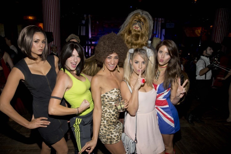 На вечеринке по случаю Хеллоуина актрисы появились в компании подруг, что позволило представить им группу Spice Girls в полном её составе.