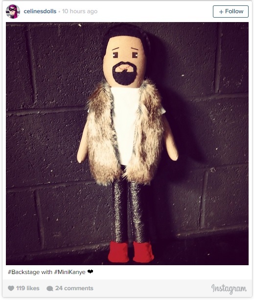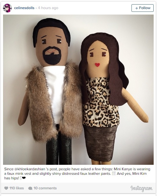Мини-Кими и Канье были созданы Celine's Dolls, бруклинской компанией, которая производит пользовательские куклы. На страничке в Instagram компании также размещены снимки куклы Кими, и даны ответы на некоторые из вопросов о их продуктах, изображенных на фотографиях. "Да, кукла Канье носит кроссовки Yeezy, и нет, крошечный меховой жилет не сделан из ненатурального меха. И, конечно же, мини-Ким имеет бедра!"