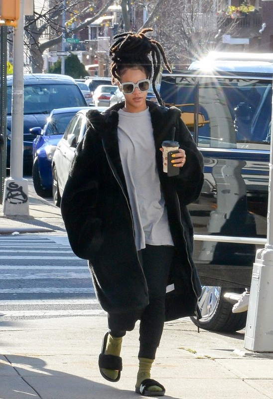 На съемочной площадке запечатлели и Рианну, которая щеголяла в шубке от Fenty X Puma.