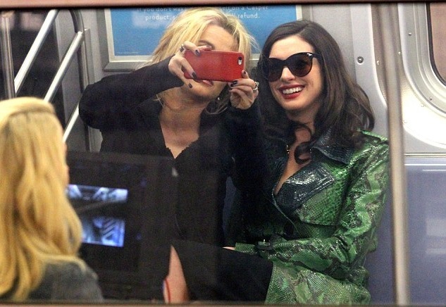 Энн Хэтэуэй и Хелена Бонем Картер веселились, снимая сцены в нью-йоркском метро. Актрисы нашли время и для селфи.