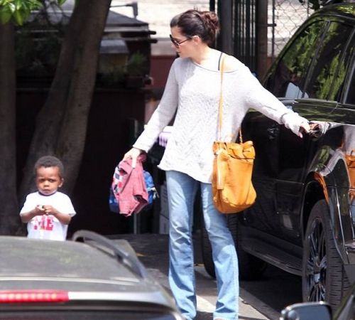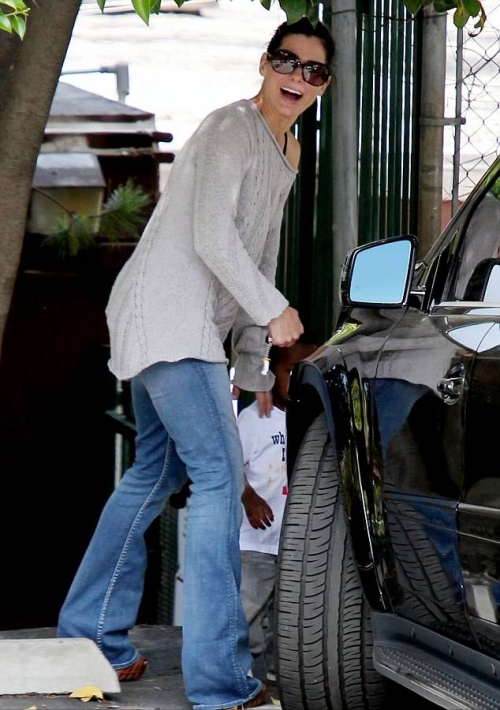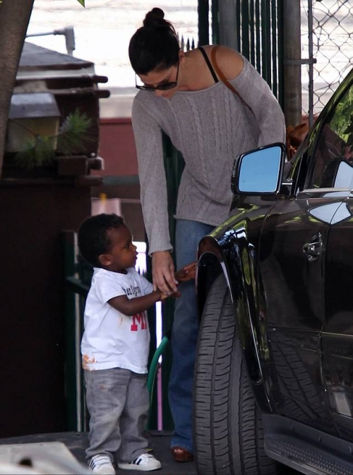 Сандра Баллок всегда сама старается забрать своего долгожданного ребенка из садика и 19 апреля не стало исключением. Актриса одетая в джинсы и серый свитер, выглядела счастливой. Она довольно наблюдала, как Луи заводит первых своих друзей.