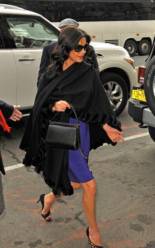 Рано утром в четверг Кэтрин Зета-Джонс была замечена выходящей из своей нью-йоркской квартиры. Актриса покидала ее так рано, что на улице еще было темно.Она спешила на съемки популярного американского шоу The Today Show.
