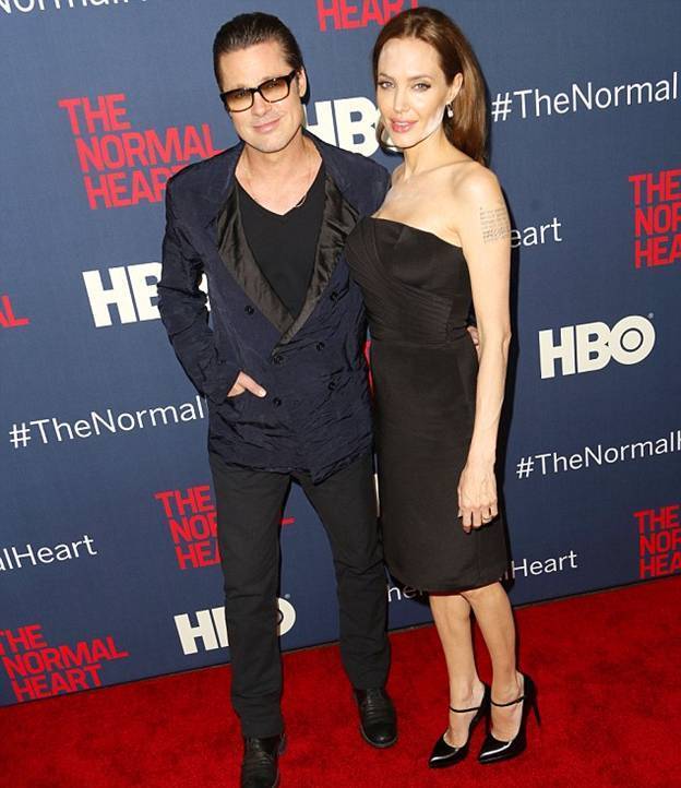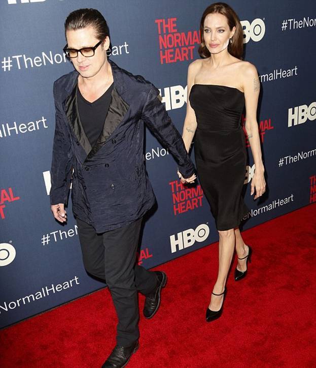В понедельник вечером Анджелина Джоли и Брэд Питт приехали на премьеру телефильма НВО "Обычное сердце", в котором Брэд выступил в качестве продюсера. Несмотря на то, что Анджелина потрясающе выглядела в своем черном платье-карандаш, ее крупный план оставлял желать лучшего.