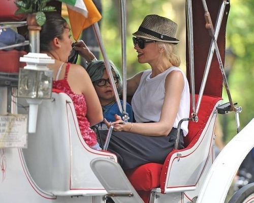 Интересно, что не так поп-звезда привлекала к себе внимание, как вид ее старшего сына Кингстона, который носился по парку с бирюзовыми волосами. Гвен пыталась поймать его, но у нее это плохо получилось.
